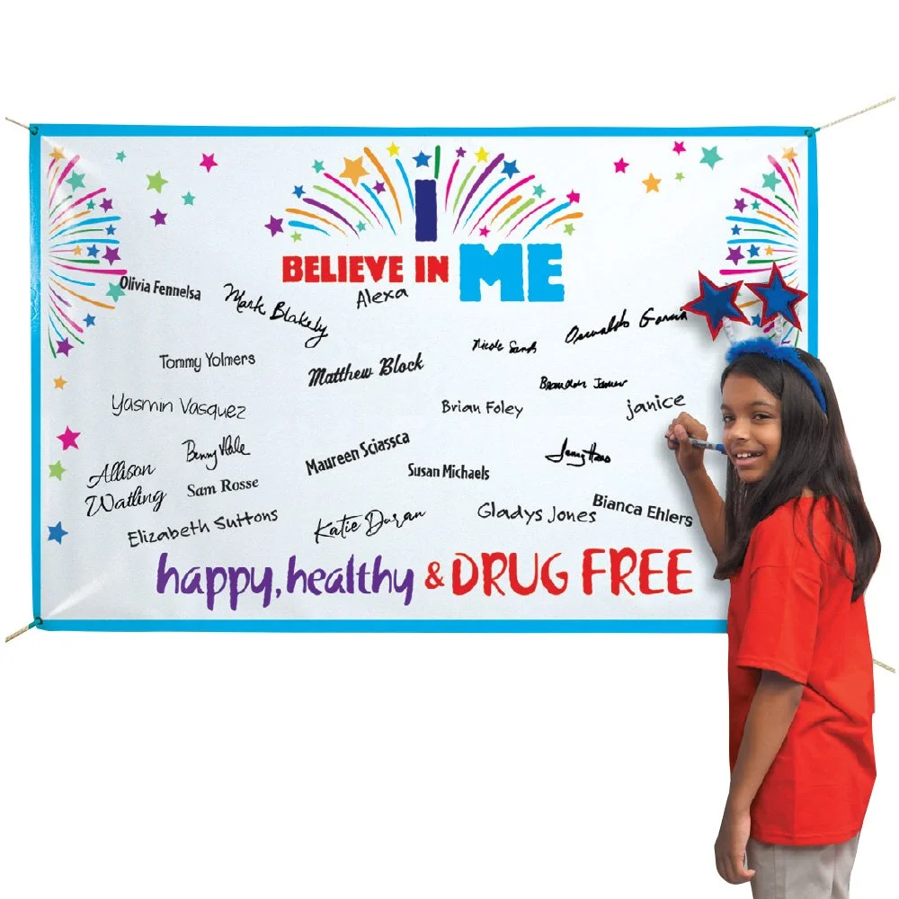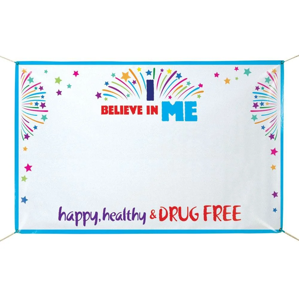 Features our exclusive I Believe In Me: Happy, Healthy, & Drug Free design plus room for students to sign the banner and pledge their commitment to keep your school drug free