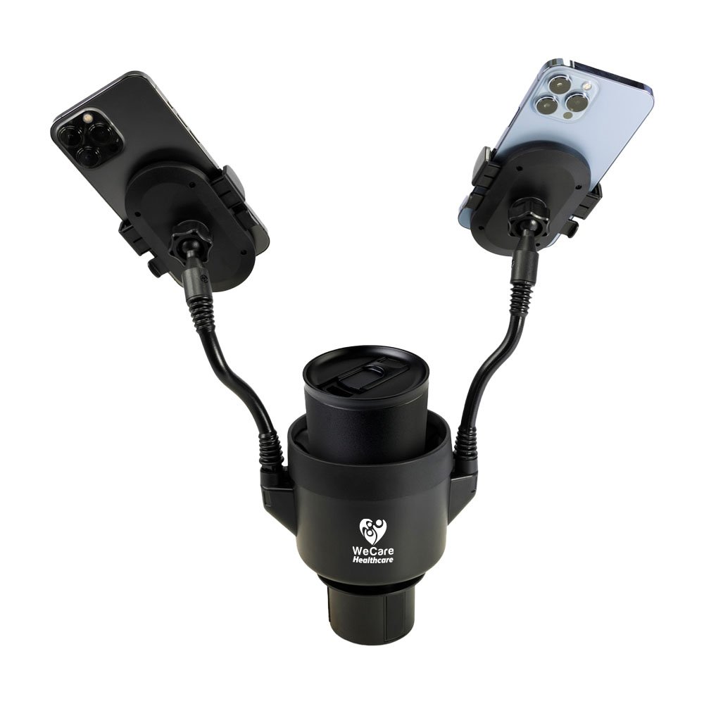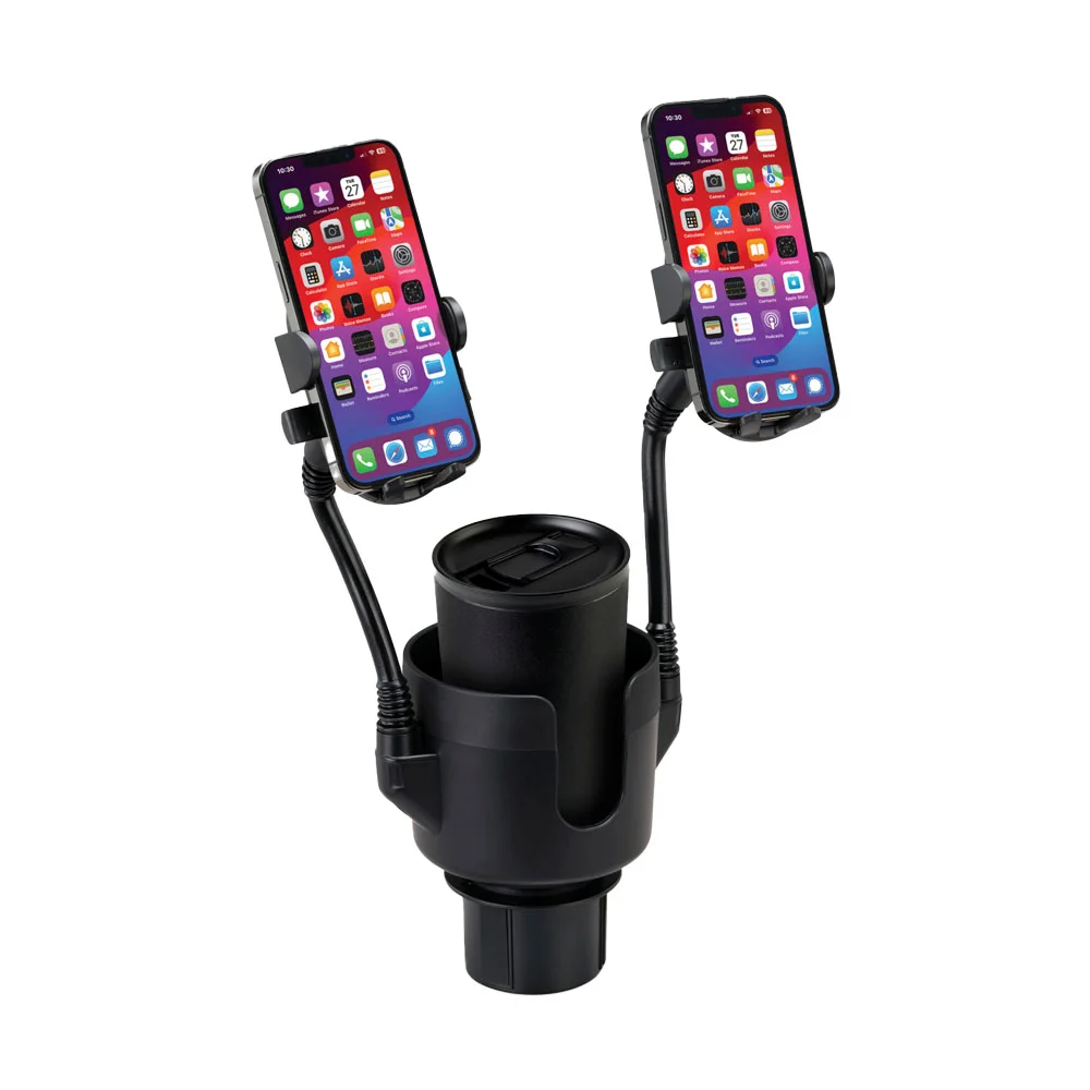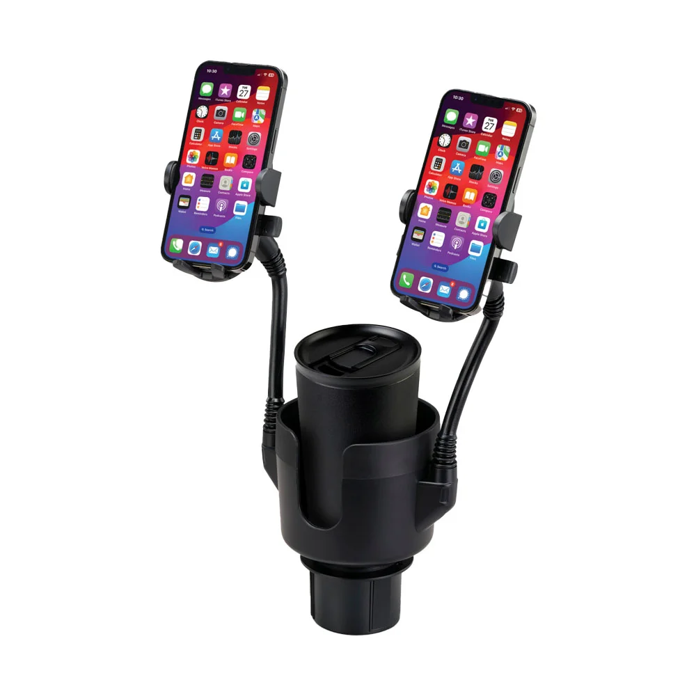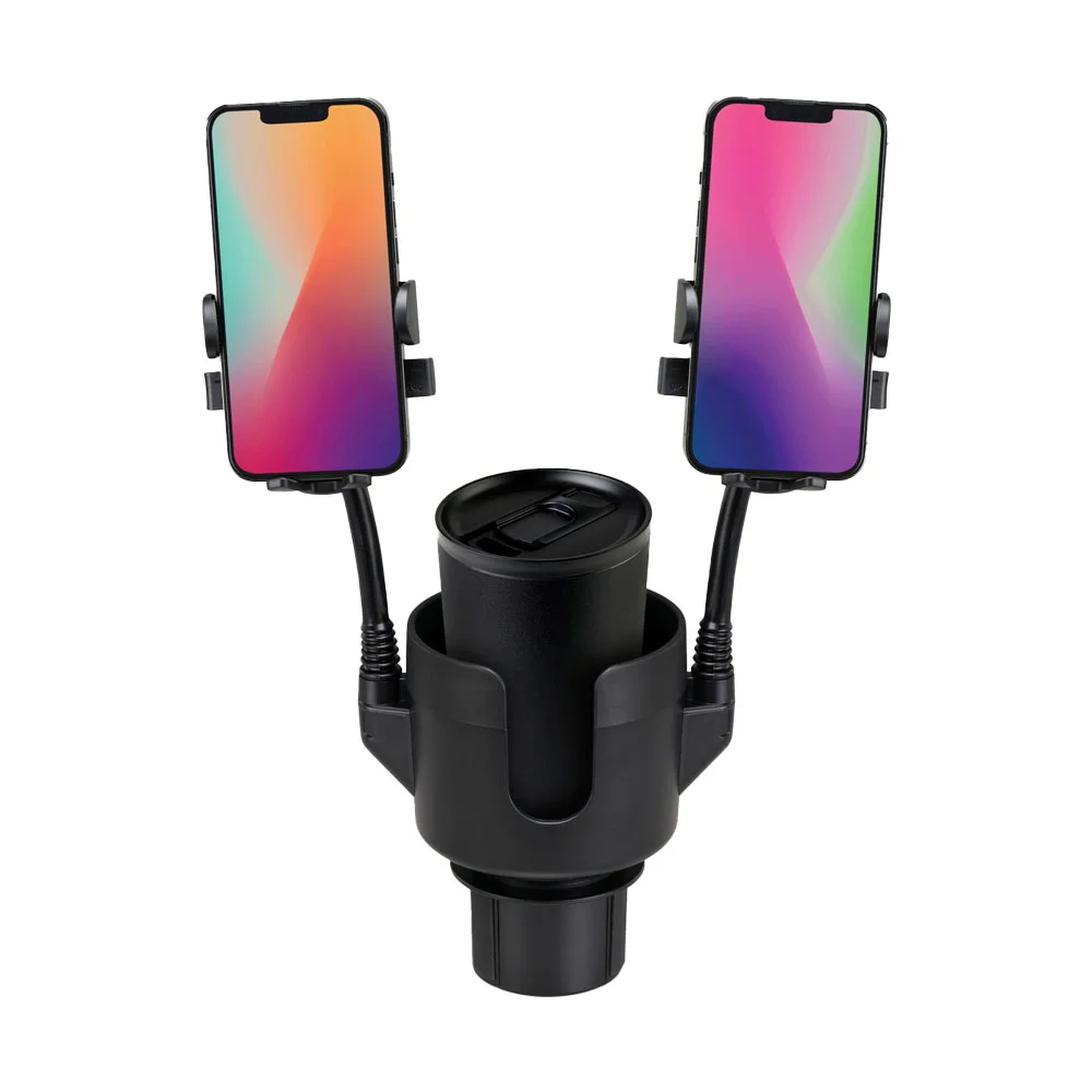 iLive® Hands-Free Anti-Slip Cup Holder With Dual Bendable Rotating Phone Mounts - One-Color Personalization Available