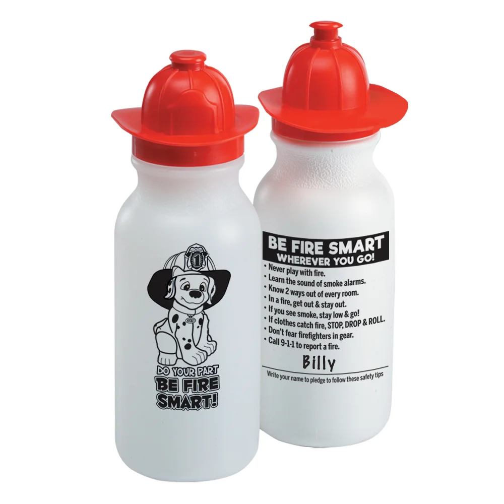 20-Oz. Fire Helmet Water Bottle:Do Your Part: Be Fire Smart! on front; Fire-safety tips on back; Push-pull lid; Eco friendly; Reusable; BPA free