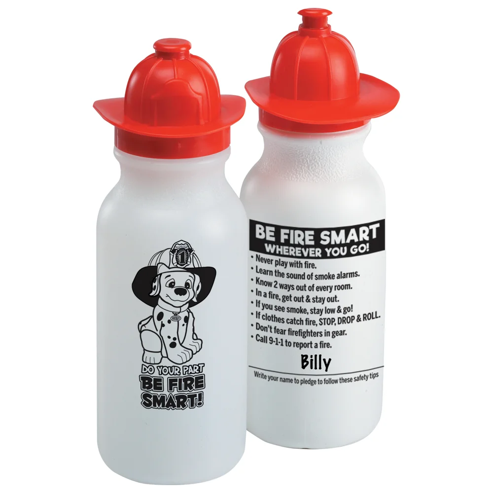 20-Oz. Fire Helmet Water Bottle:Do Your Part: Be Fire Smart! on front; Fire-safety tips on back; Push-pull lid; Eco friendly; Reusable; BPA free