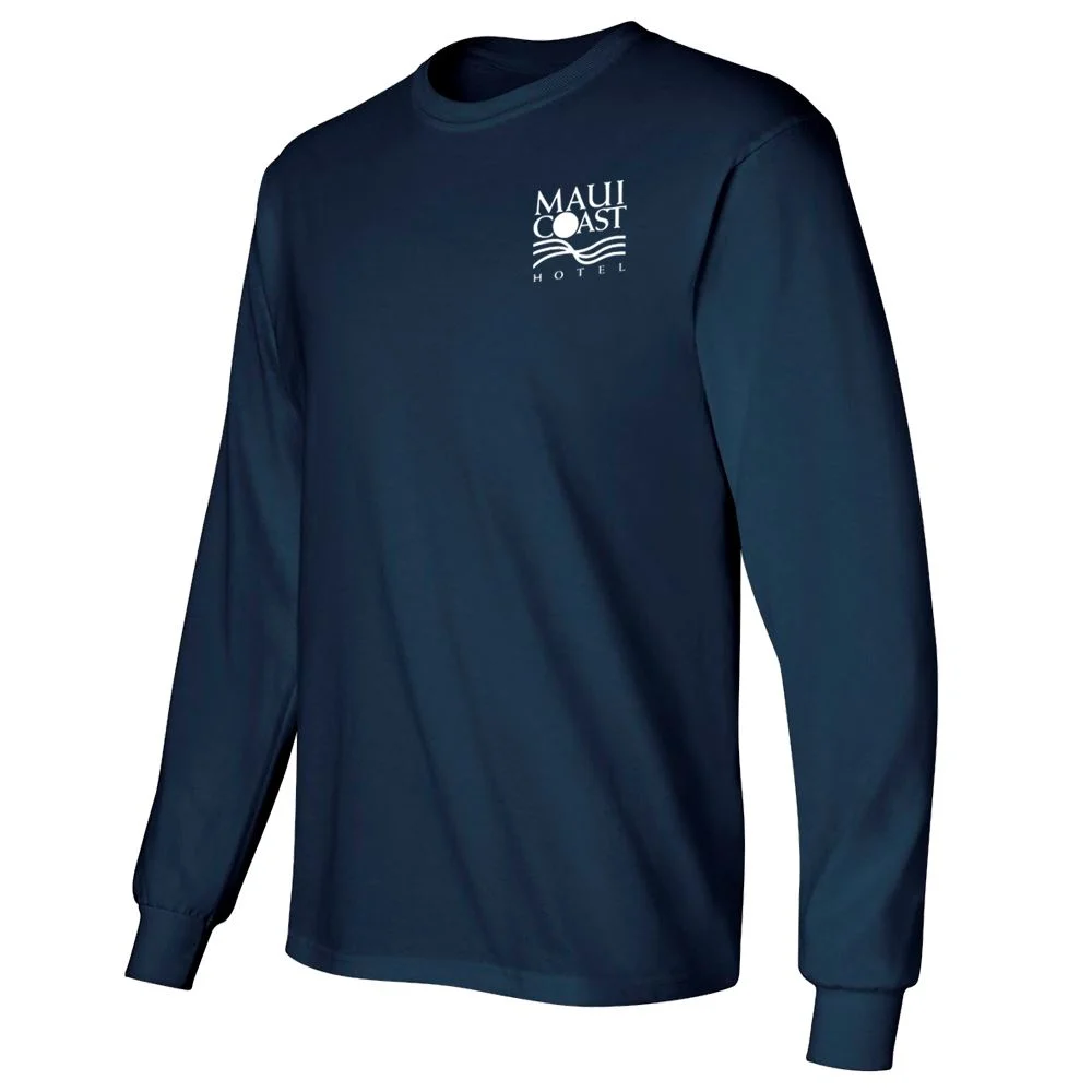 Crewneck, long sleeve 100% preshrunk cotton t-shirt in navy