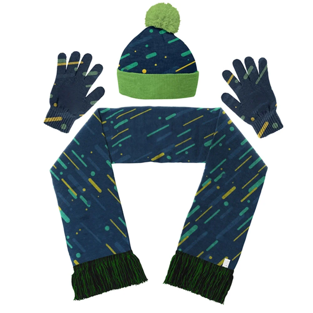 Knit Hat, Gloves, & Scarf Trio Set - Full-Color Personalization Available