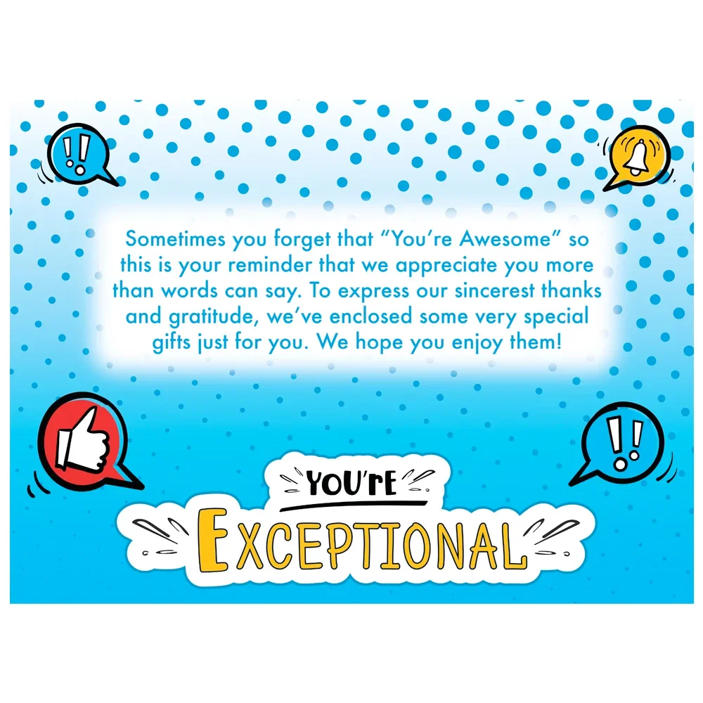 Personalized Appreciation Card:We never want you to forget how awesome and appreciated you are! To express our sincerest thanks and gratitude, we've enclosed some very special gifts just for you.