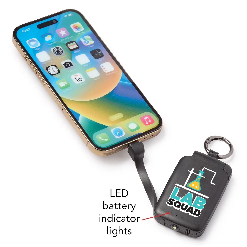 Lab Squad 3-in-1 2,000-mAh Mini Power Bank With LED Light & Keychain Ring