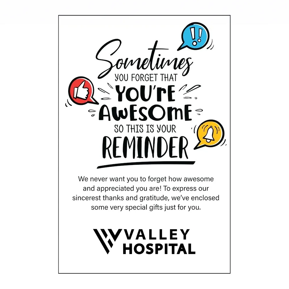 Personalized Appreciation Card:We never want you to forget how awesome and appreciated you are! To express our sincerest thanks and gratitude, we've enclosed some very special gifts just for you.