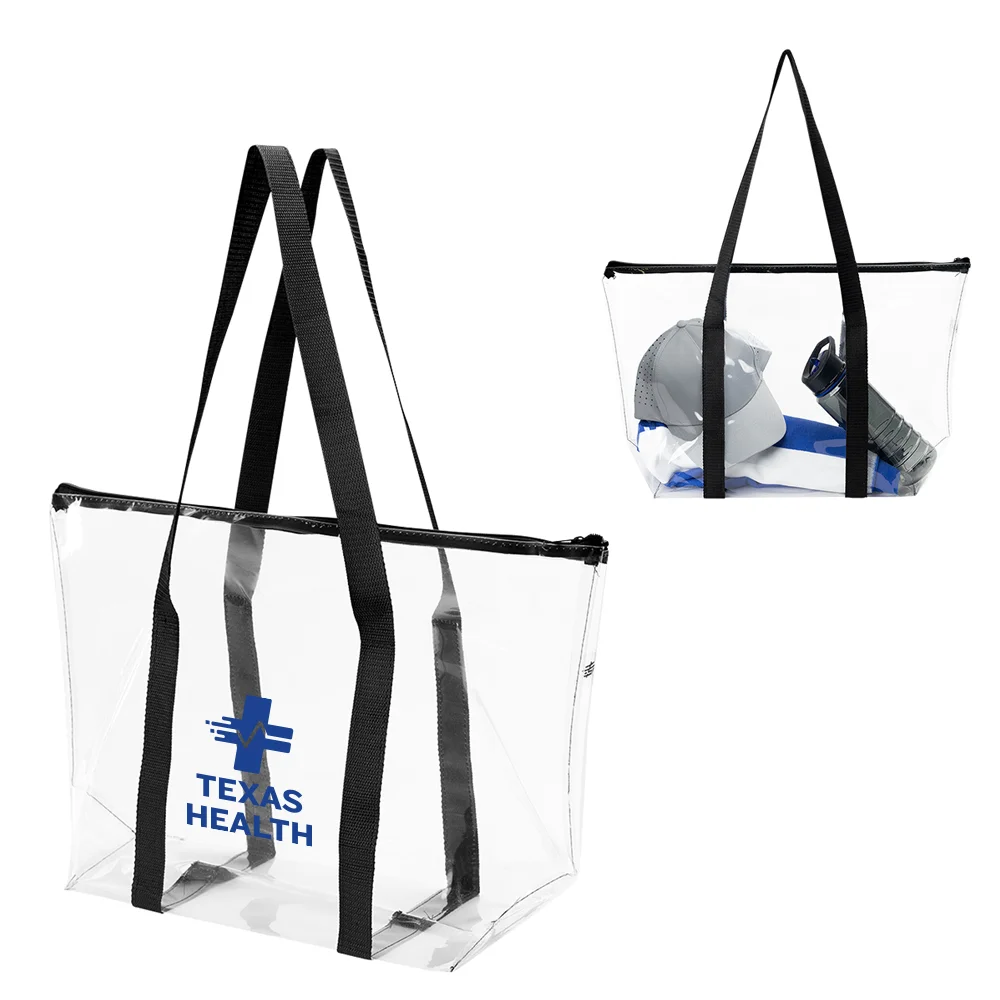 Large Clear Safety Tote Bag With Top Zip - One-Color Personalization Available