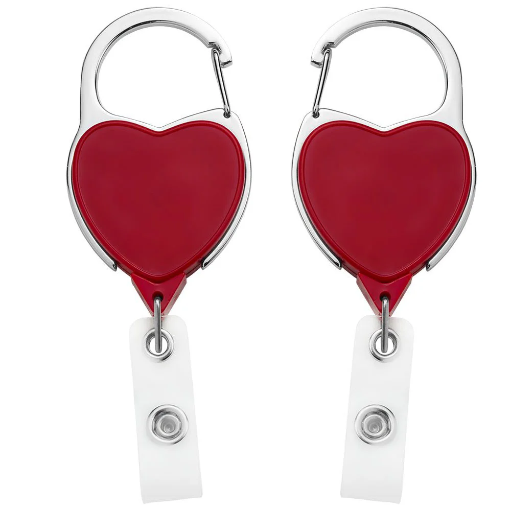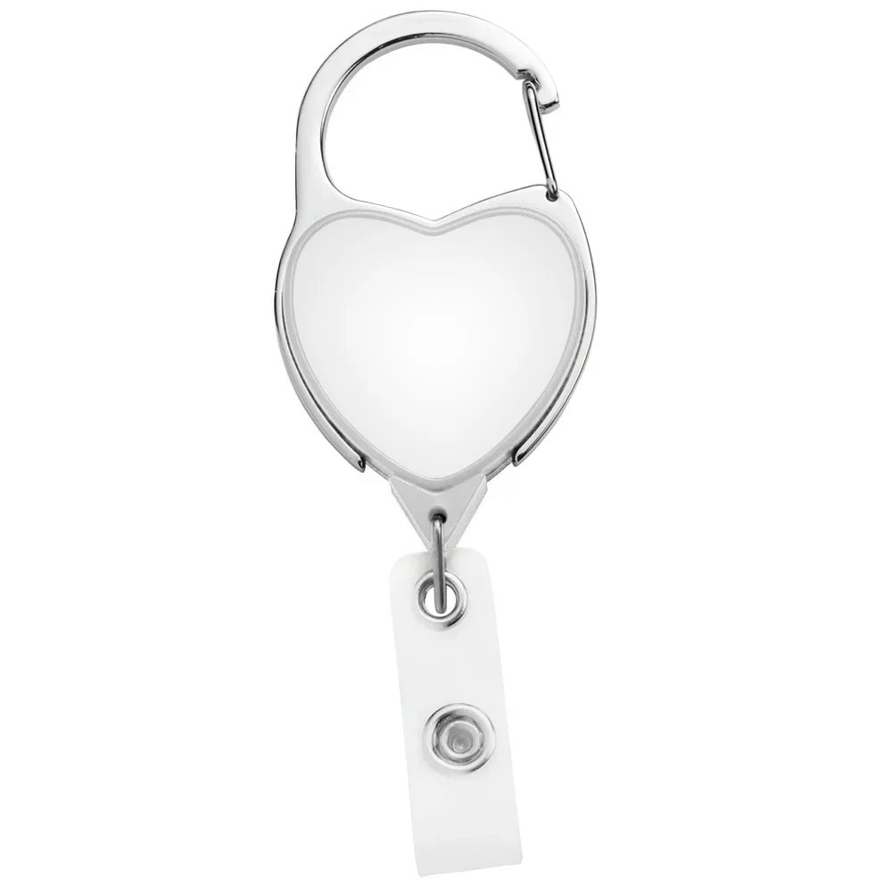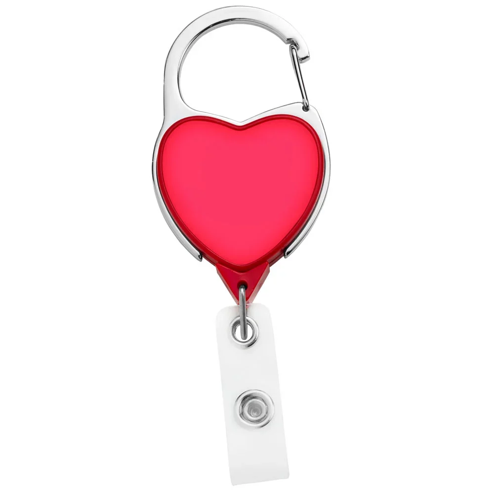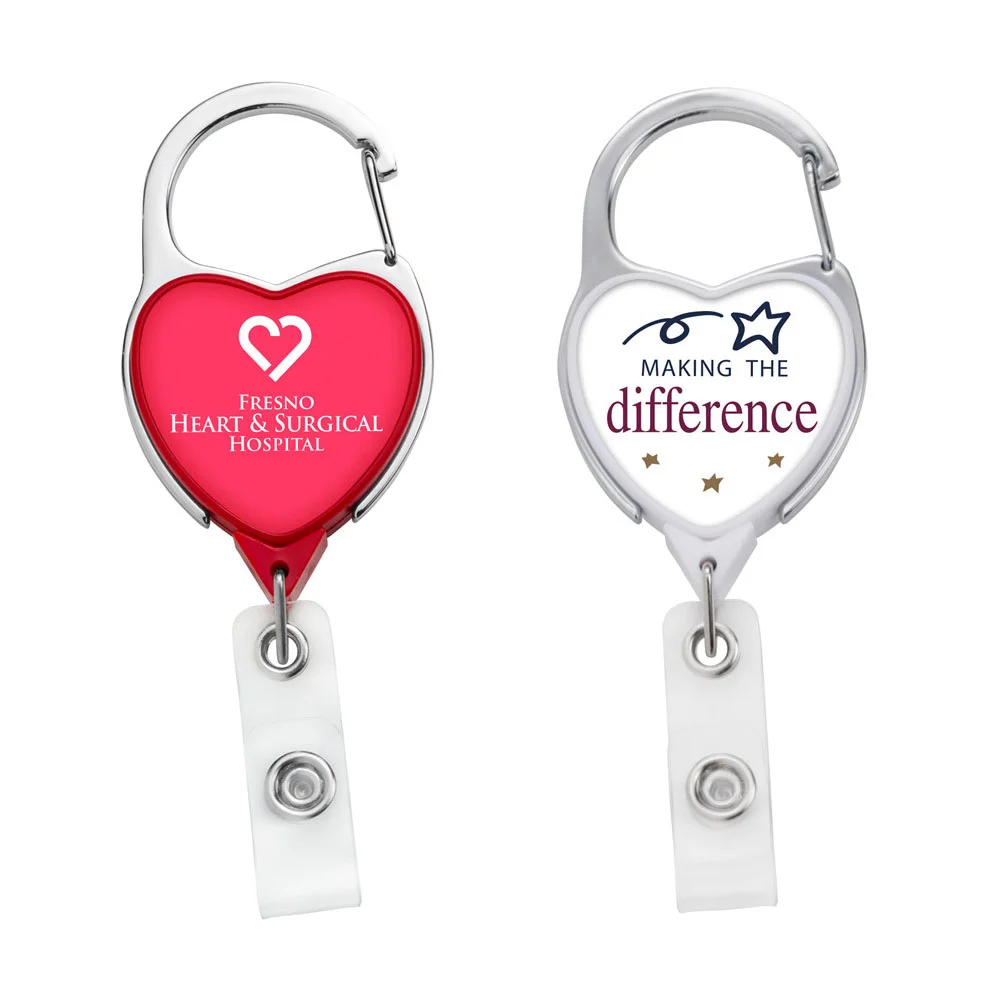 Large Heart Badge Reel With Carabiner Clip - Full-Color Personalization Available