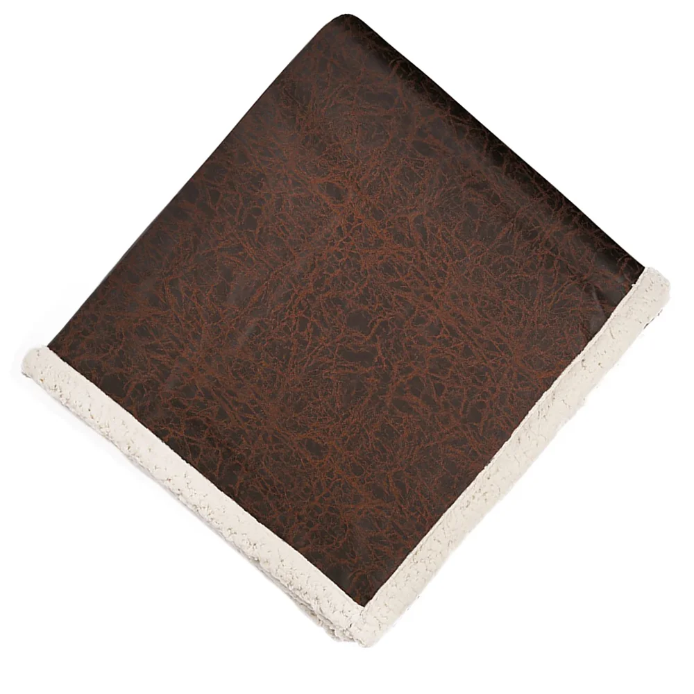 • 100% polyester featuring a leather-like brown top side and a super-soft lambswool-like plush white microsherpa on the other side