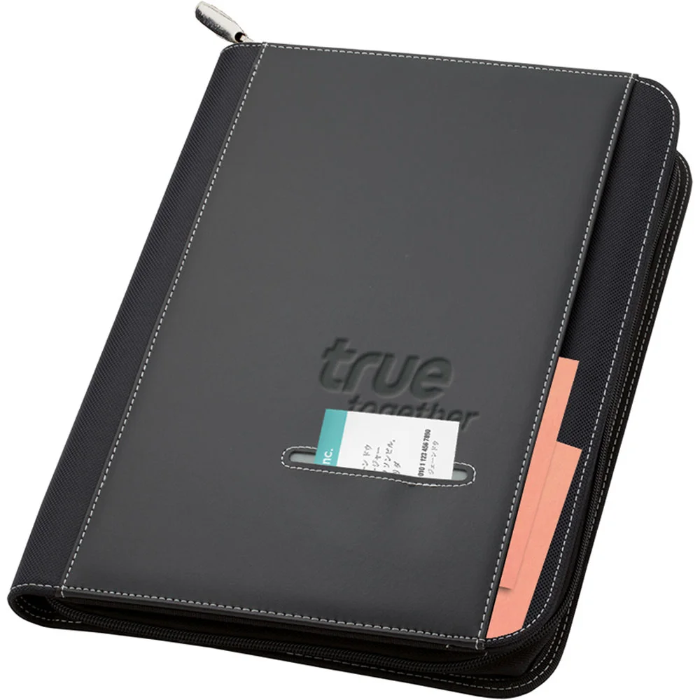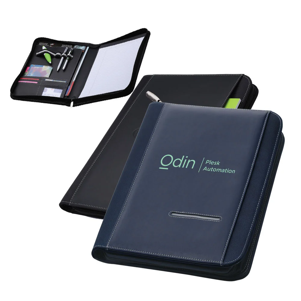 The Sterling zippered portfolio is attractive and versatile with its exterior document and card pockets, internal elastic bands for pens and electronics, internal pockets for cards and documents and an included 8-1/2? x 11? writing pad