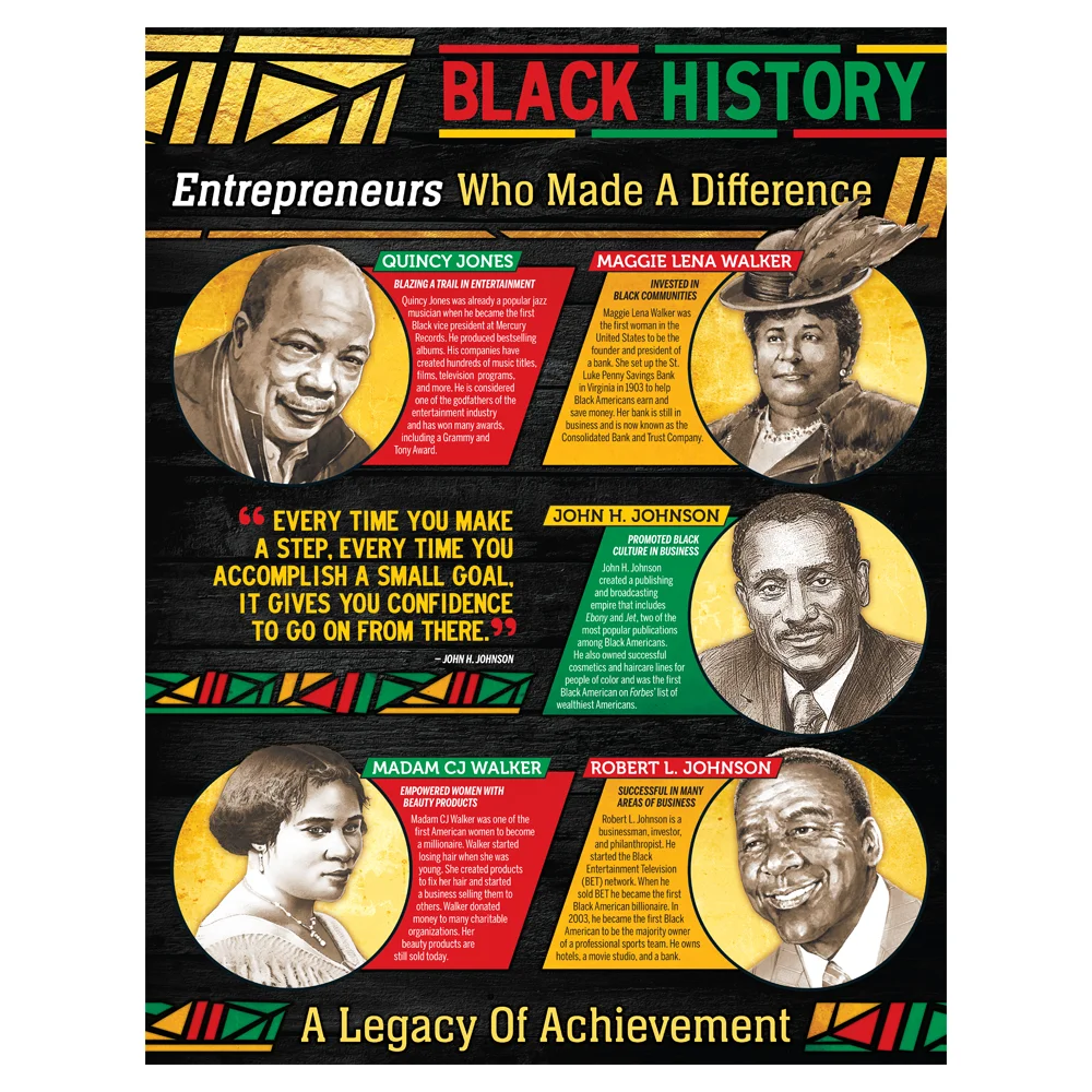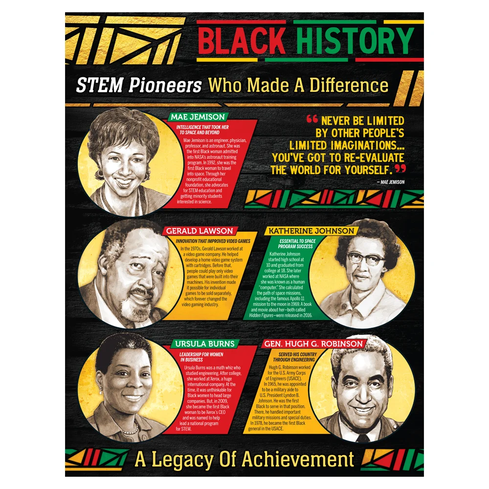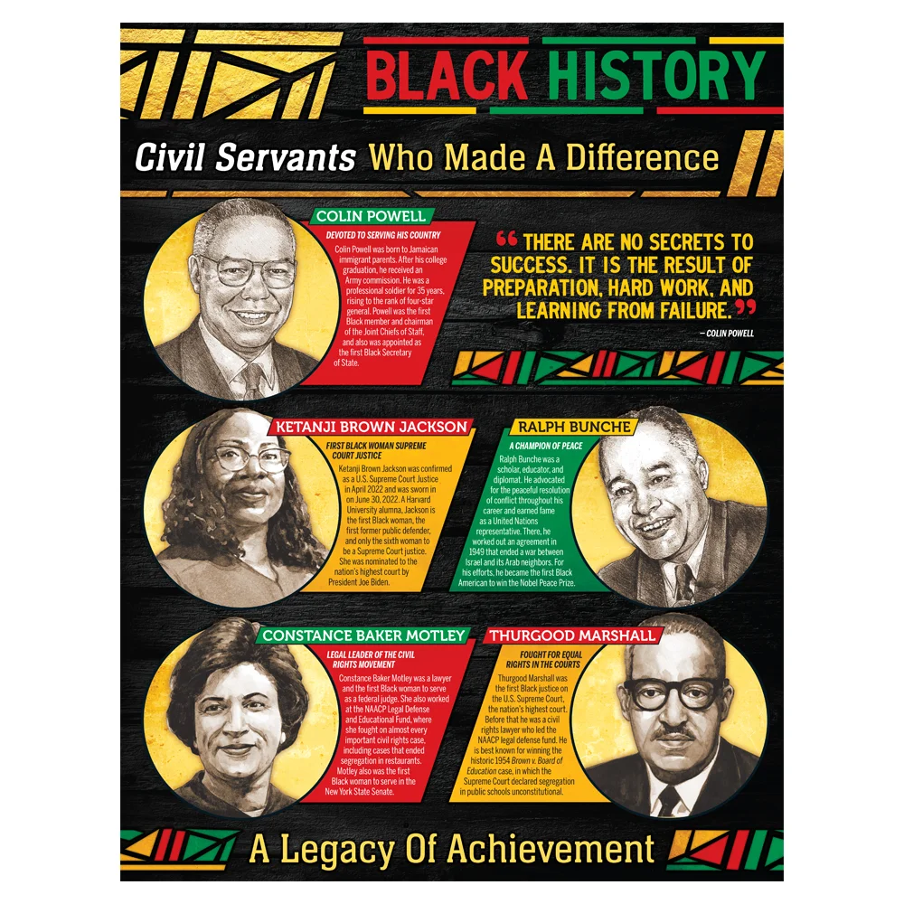 Each colorful poster depicts 5 influential Black Americans who made substantial achievements in their field - and profound impacts on history into today's society