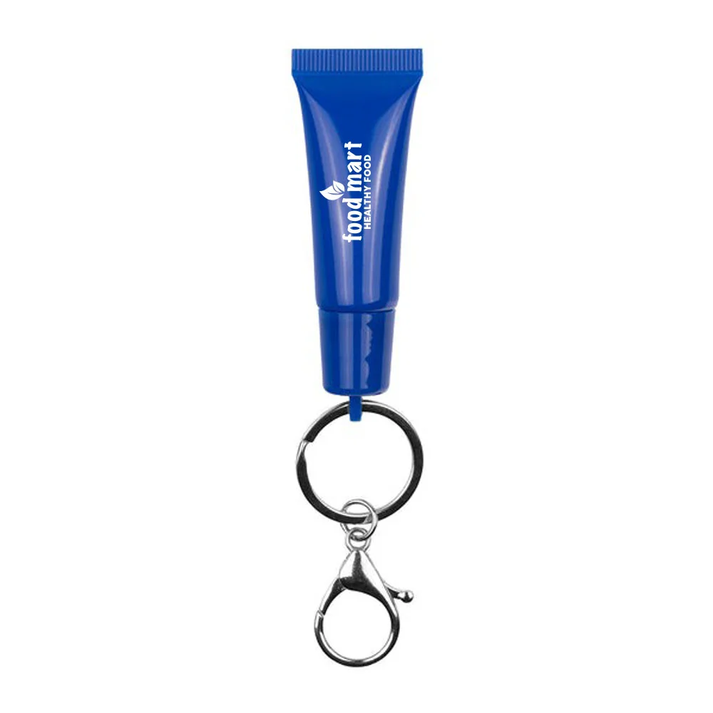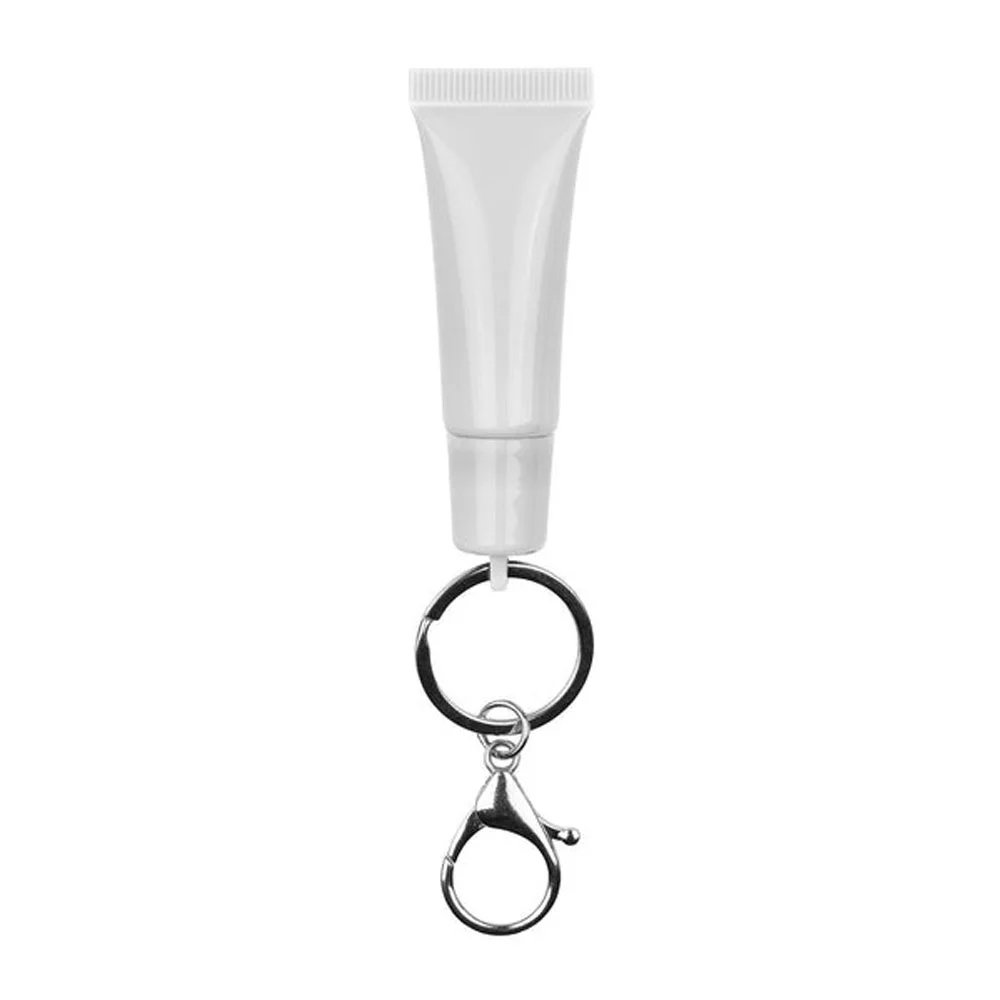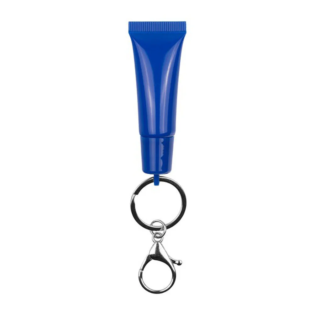 • This 10g gel lip balm comes in a convenient PE soft tube with a zinc alloy lobster claw keychain head and nickel-plated iron ring