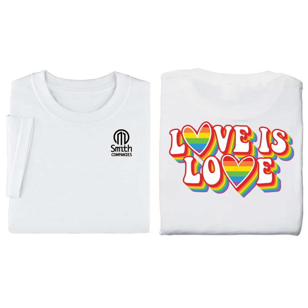 Rainbow Love Heart Unisex 2-Sided Short-Sleeved T-Shirt - Silkscreened Personalization Available