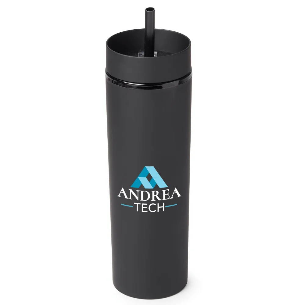 Personalized 16-oz. Tumbler: Sipping simplified: one lid, two ways to enjoy hot or cold beverages on the go; Double-walled acrylic body with easy-grip, satin, rubberized finish; Screw-on lid with two ways to sip: slide lid opening for hot drinks & straw port opening for cold drinks; Reusable soft straw included; Slips through straw port; Stopper on end prevents spills and keeps it in place; Eco friendly; Reusable; BPA free; Note: Hand wash recommended