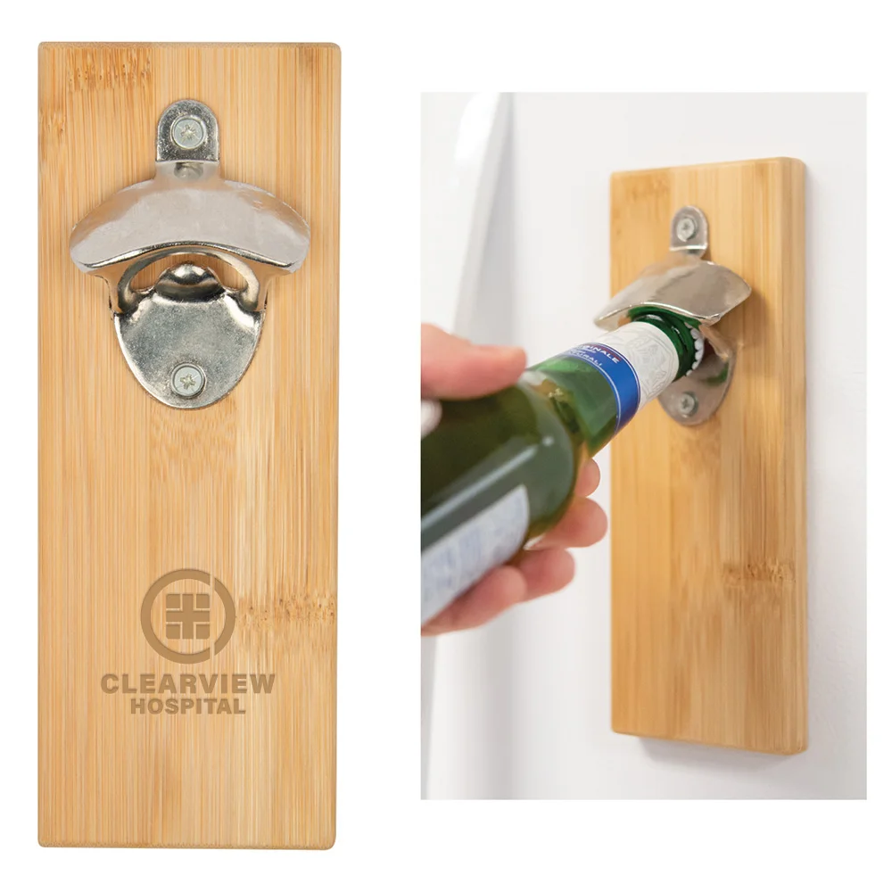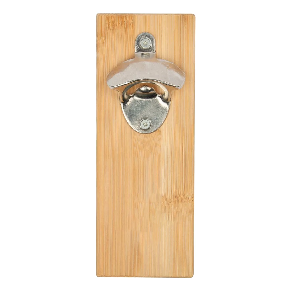 Bamboo block outfitted with a sturdy bottle opener