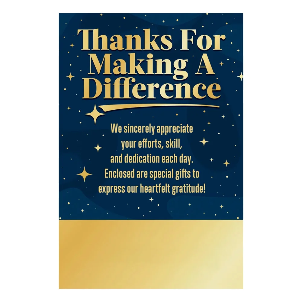 Personalized Appreciation Card: Thanks for making a difference. We sincerely appreciate your efforts, skill, and dedication each day. Enclosed are special gifts to express our heartfelt gratitude!