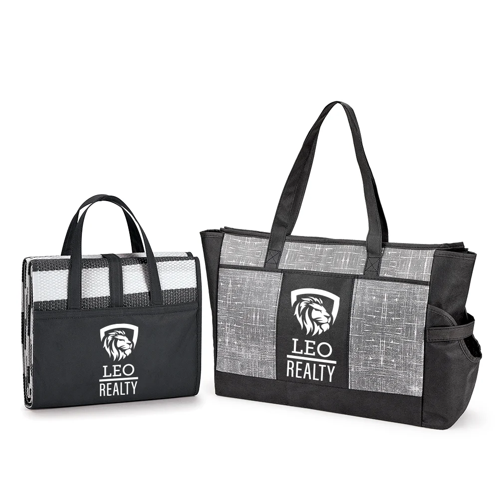 2-piece gift set includes: Malibu Non-Woven Insulated Cooler Tote With 40-oz. Pocket & Beach Mat