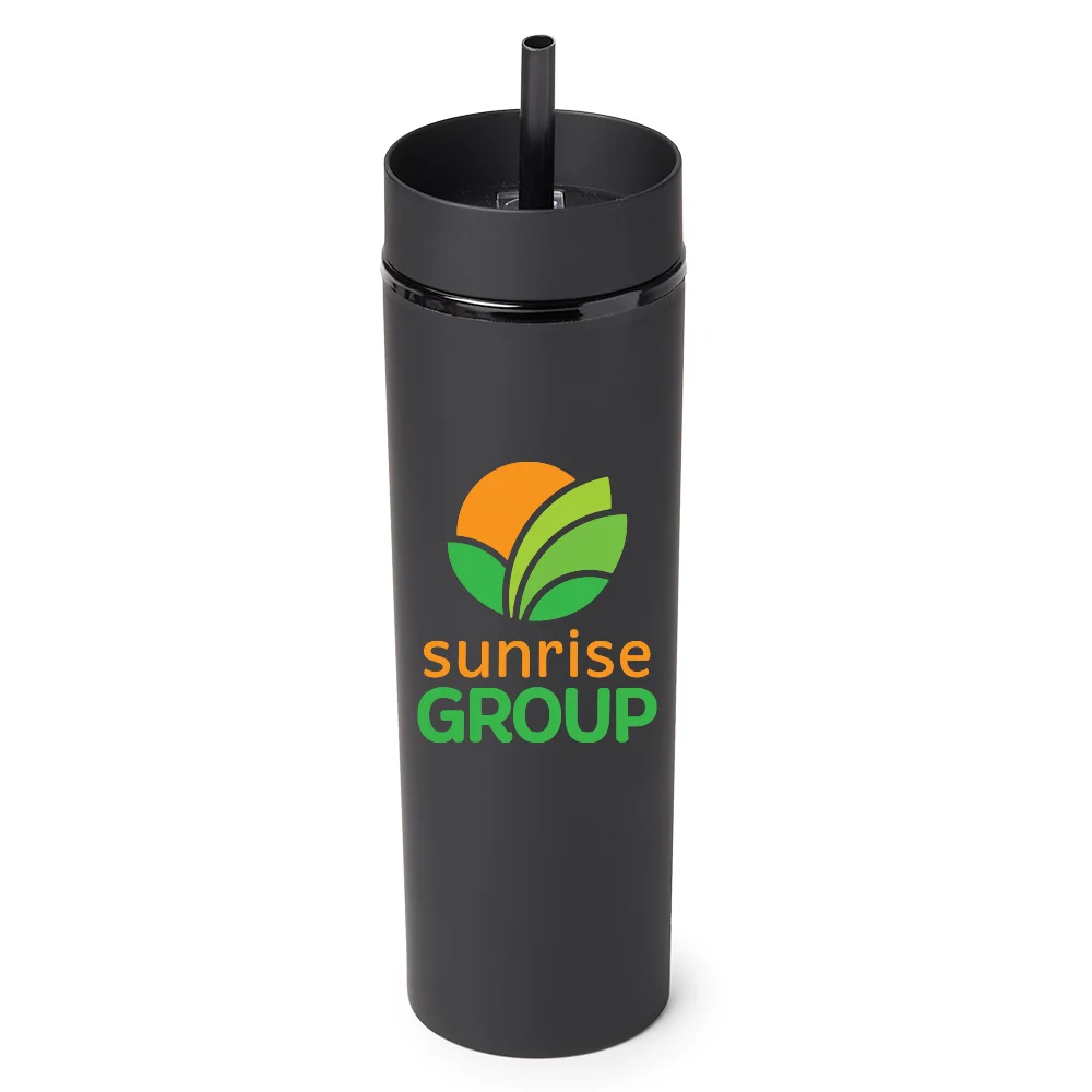 Personalized 16-oz. Tumbler: Sipping simplified: one lid, two ways to enjoy hot or cold beverages on the go; Double-walled acrylic body with easy-grip, satin, rubberized finish; Screw-on lid with two ways to sip: slide lid opening for hot drinks & straw port opening for cold drinks; Reusable soft straw included; Slips through straw port; Stopper on end prevents spills and keeps it in place; Eco friendly; Reusable; BPA free; Note: Hand wash recommended
