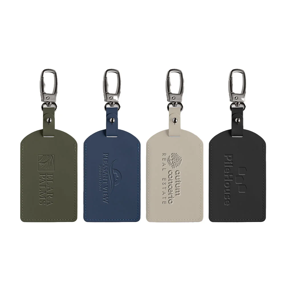The design ensures that personal information is securely enclosed between two layers of 50% recycled content PU, preventing loss and maintaining a clean look