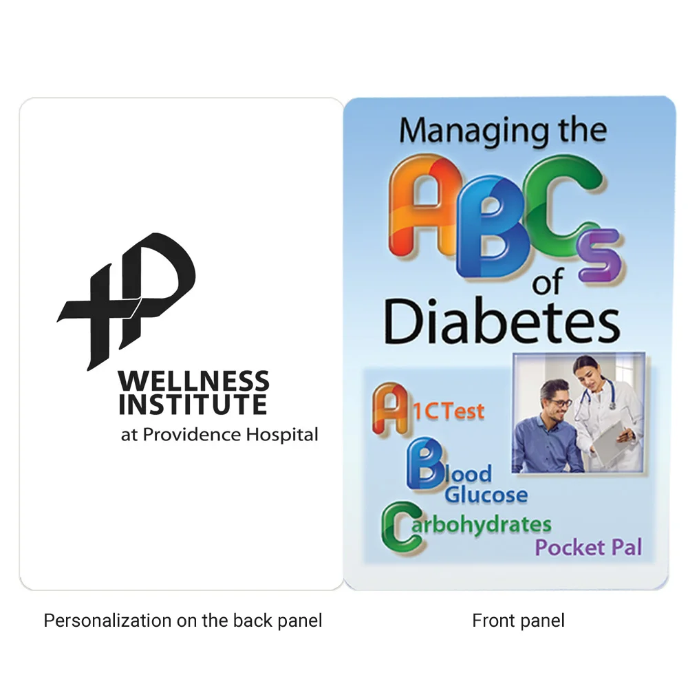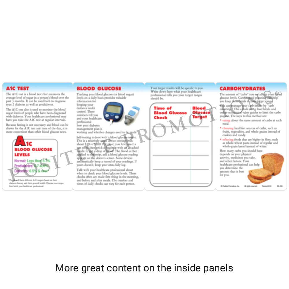 ABC format explains the A1C Test and when to have it, discusses checking blood glucose throughout the day, and introduces how to count and control carbohydrates to avoid blood sugar spikes