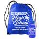 Personalized Backpack: Durable nylon backpack with reinforced corners; Cinches shut with drawstrings that double as shoulder straps for carrying; Large front slip pocket, large mesh side pocket, and pen loop; Reflective safety strip increases visibility at night
