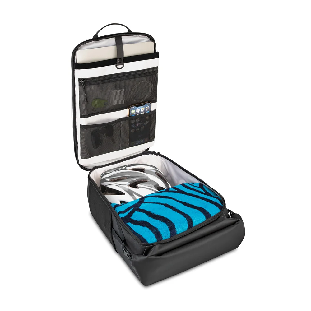 Made of 600x600-denier rPET PU, a fiber derived from melting down post-consumer recycled plastic bottles, and matte TPU; PVC free