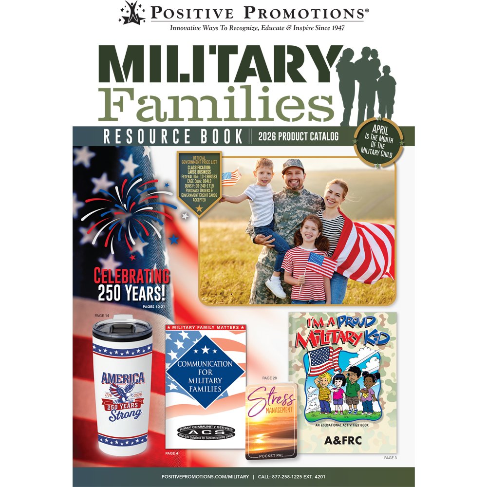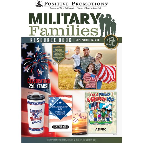 Positive Promotions supports veterans, service members, and their families. Offering resources for adults and children, our Military Families catalog features handbooks, guides, activity books, and more tools covering topics from relocation, deployment, and reunion to mental health, nutrition, and physical wellness. For children, hand out popular incentives and giveaways that reinforce the importance of leading safe, drug-free lives. Or stock up on outdoor gifts and gear that encourage an active lifestyle for veterans. With our large apparel collection, you can distribute T-shirts, jackets, and more for comfort during any season with custom logos or text representing the wearer's branch or division. Shop now to catch the best deals for any budget.
