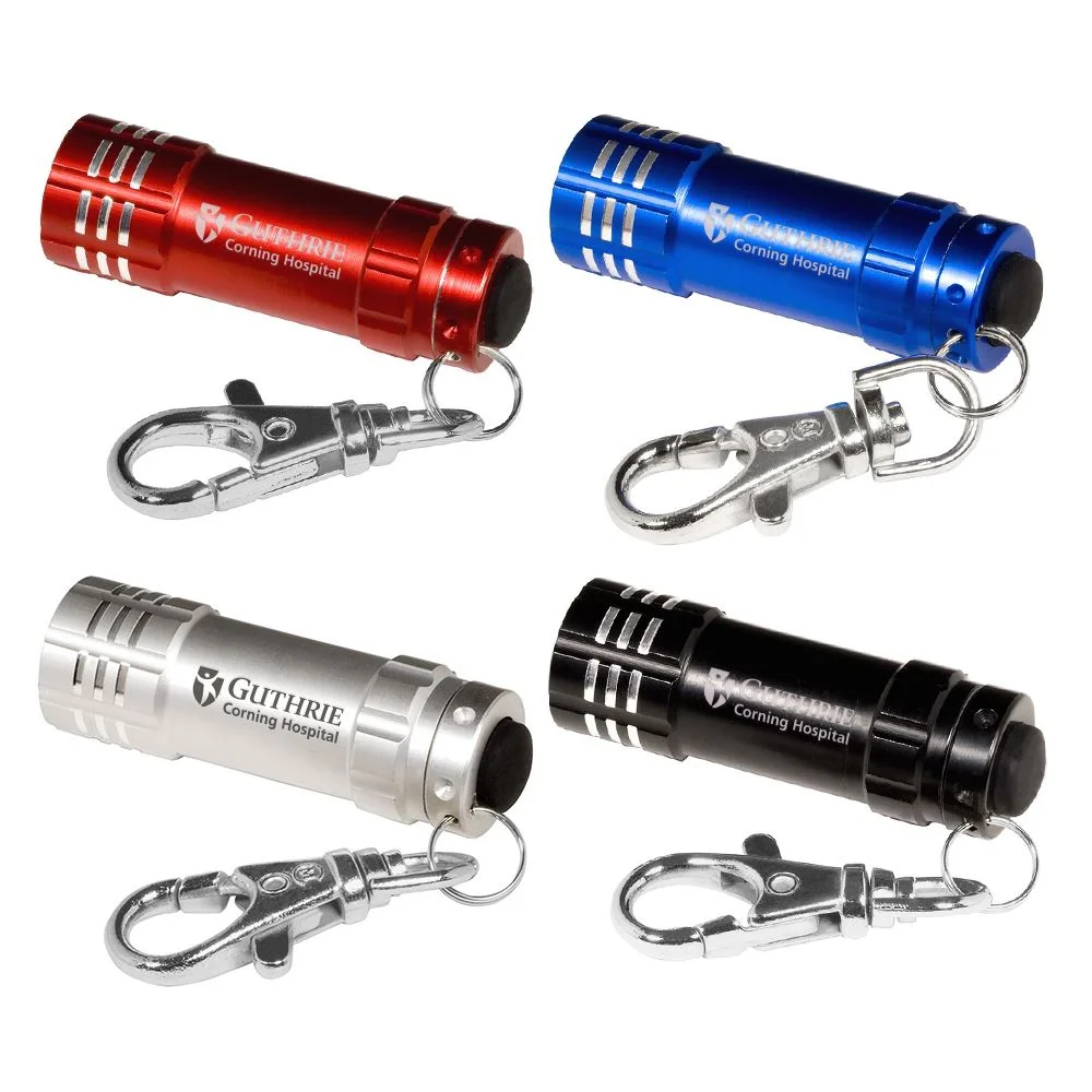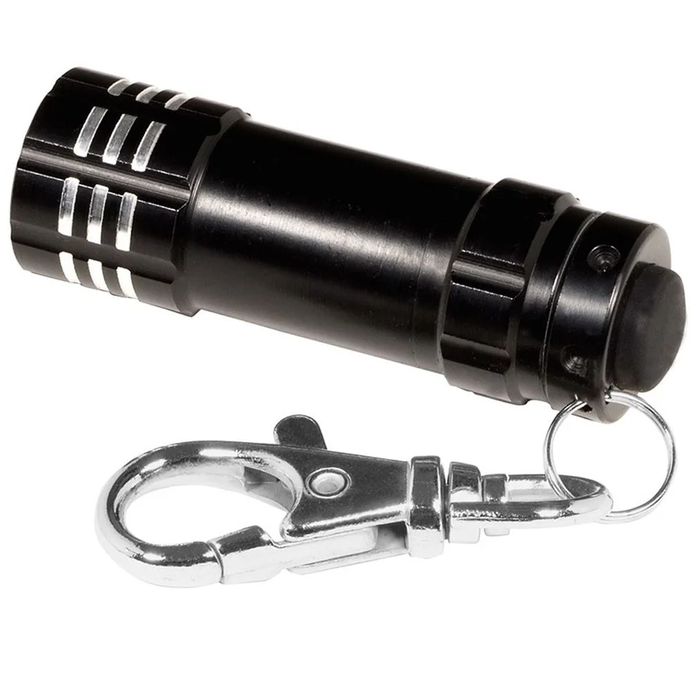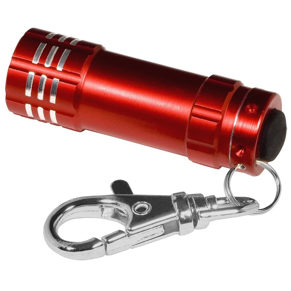 • Mini aluminum flashlight with latching key holder