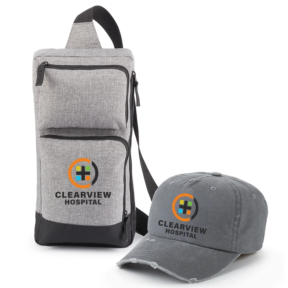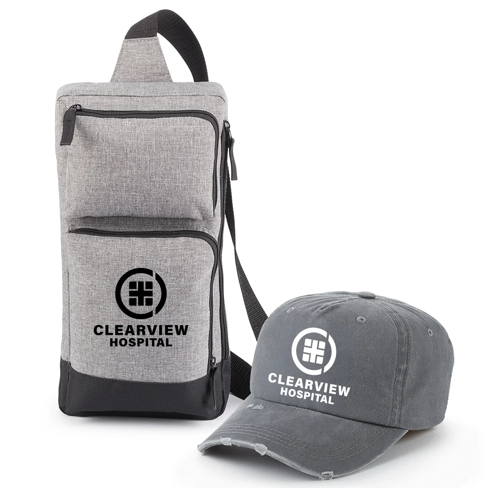 2-piece gift set includes: Modesto Multi-Pocket Sling Bag & Distressed Baseball Cap