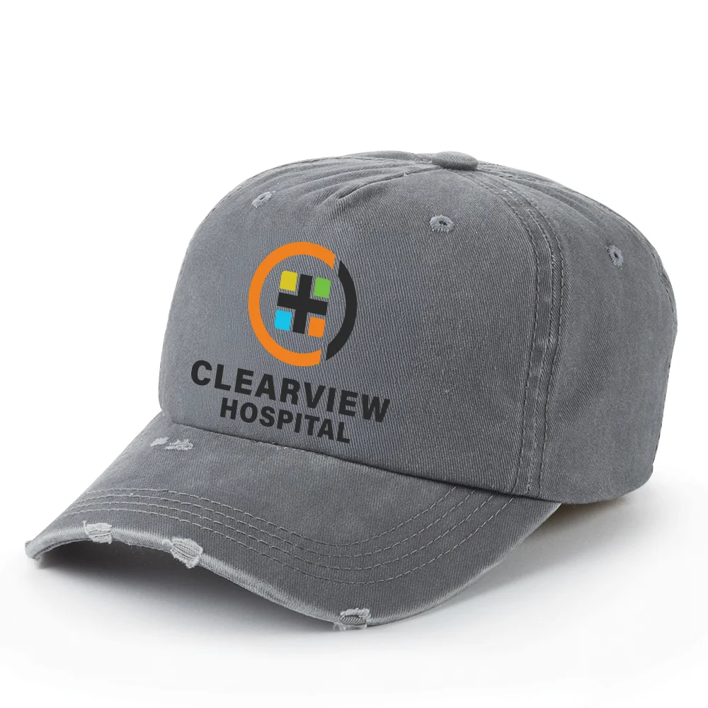 Personalized Baseball Cap: 100% cotton; Vintage-inspired, washed, distressed look; 5 panels; Eyelets for ventilation; Pre-curved visor; Slide-strap buckle closure; One size fits most