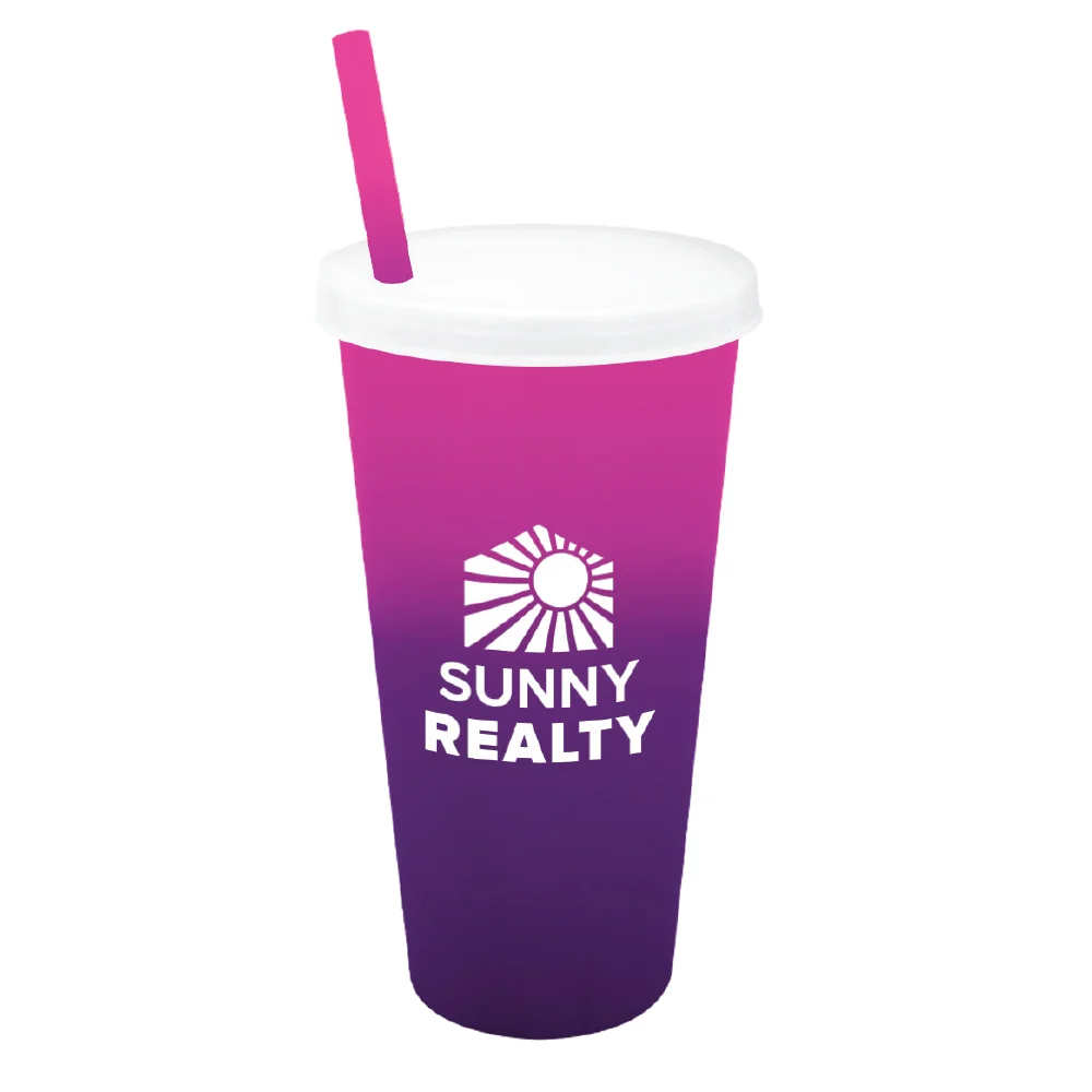• Sip-through straw opening in lid; Matching mood straw included
