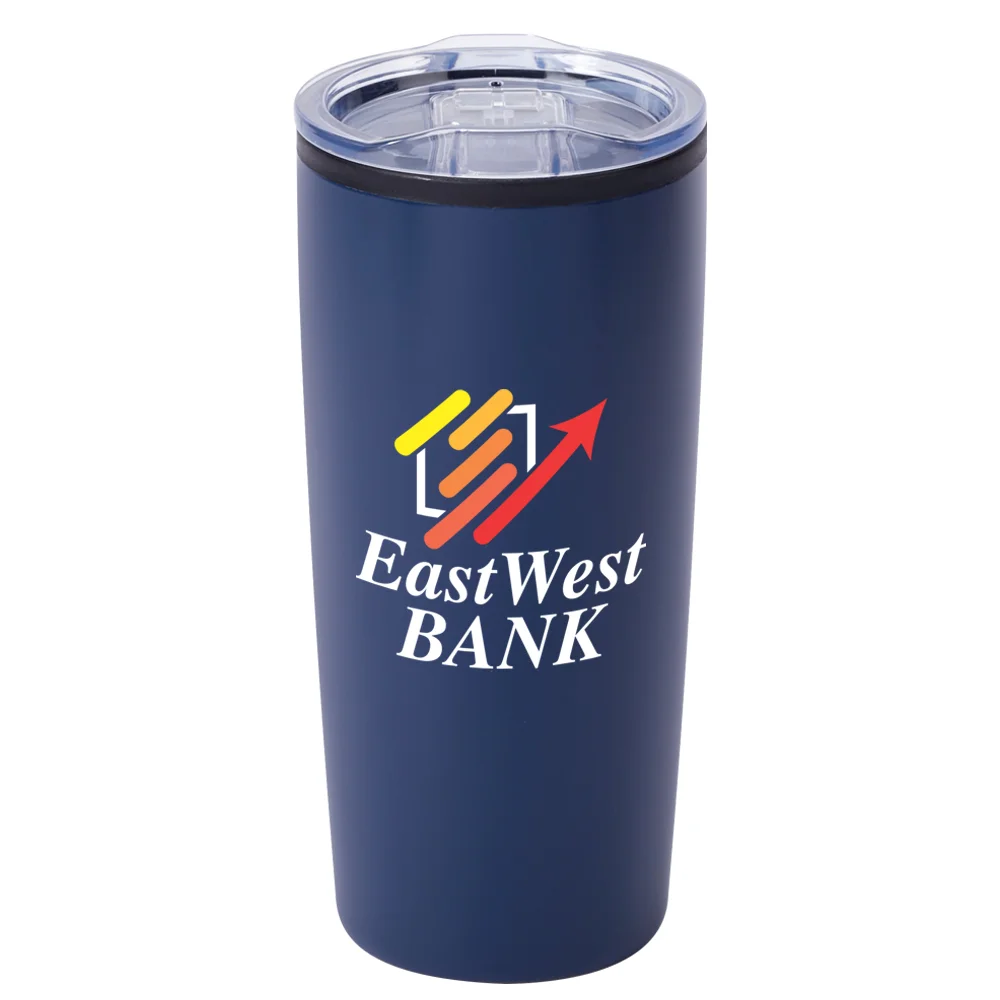 Personalized 20-oz. Tumbler: Double-wall insulated: stainless-steel exterior with a polypropylene liner; Keeps drinks hot or cold for several hours; Snap-on, spill-resistant, thumb-slide lid with rubber gasket; Eco friendly; BPA free; Reusable; Holds 18 oz. with lid on, 20 oz. with lid removed; Note: Do not microwave; Hand wash recommended