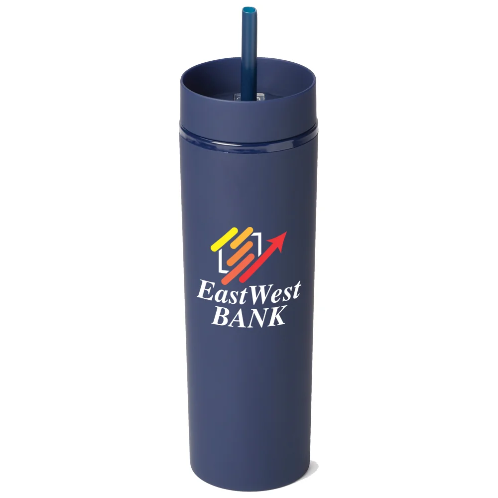 Personalized 16-oz. Tumbler: Sipping simplified: one lid, two ways to enjoy hot or cold beverages on the go; Double-walled acrylic body with easy-grip, satin, rubberized finish; Screw-on lid with two ways to sip: slide lid opening for hot drinks & straw port opening for cold drinks; Reusable soft straw included; Slips through straw port; Stopper on end prevents spills and keeps it in place; Eco friendly; Reusable; BPA free; Note: Hand wash recommended