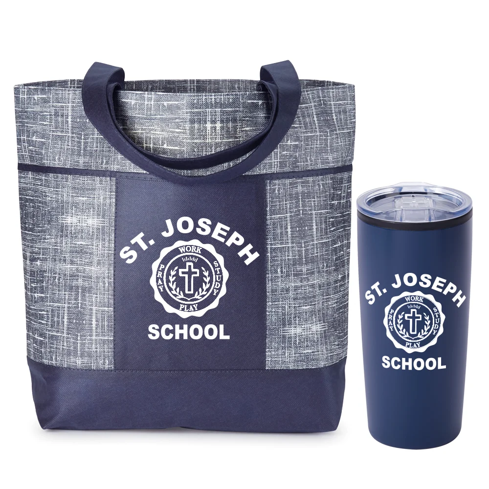 2-piece gift set includes: Malibu Non-Woven Zippered Tote Bag & Teton Stainless-Steel Tumbler 20 oz.