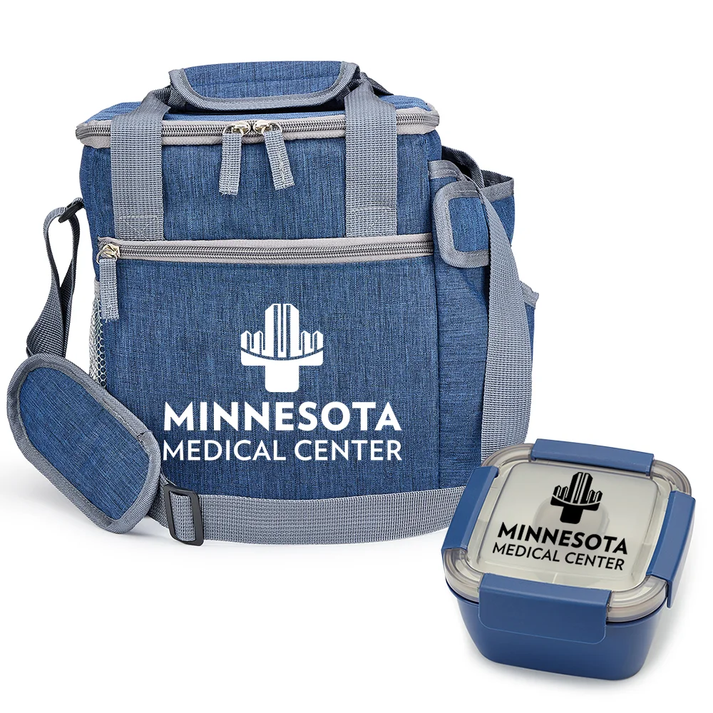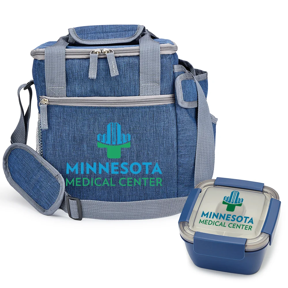 2-piece gift set includes: Riverside Deluxe Lunch/Cooler Bag With 30-/40-oz. Tumbler Pocket & Locking Food Container With Compartments 54 oz.