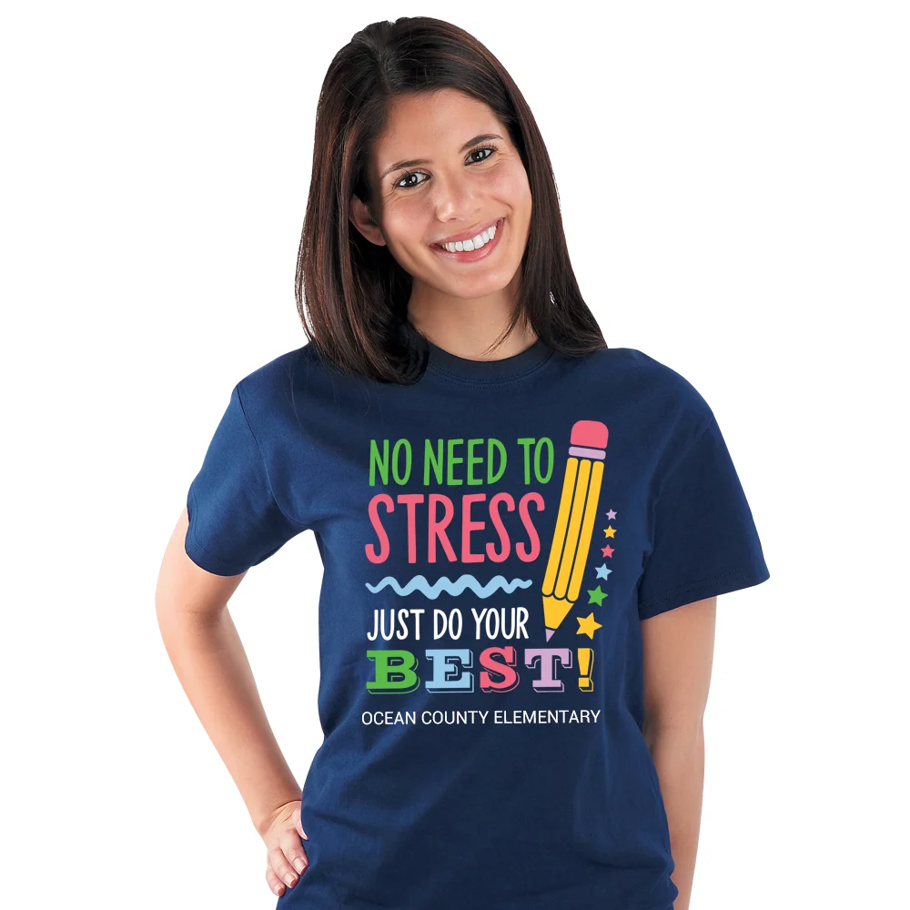 No Need to Stress; Just Do Your Best! Adult/Unisex Short-Sleeved T-Shirt - Silkscreened Personalization Available