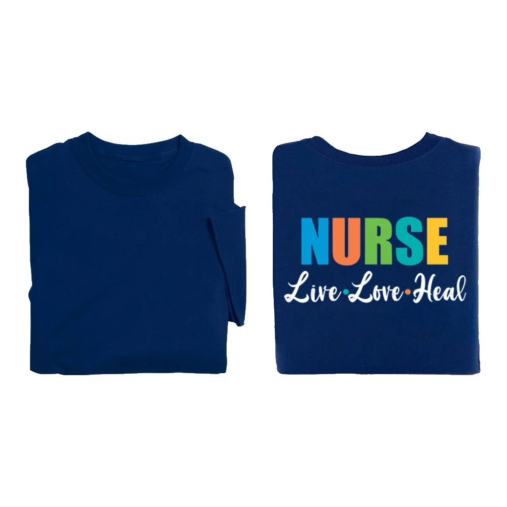 Nurse: Live, Love, Heal Unisex Two-Sided Short-Sleeved T-Shirt - Silkscreened Personalization Available