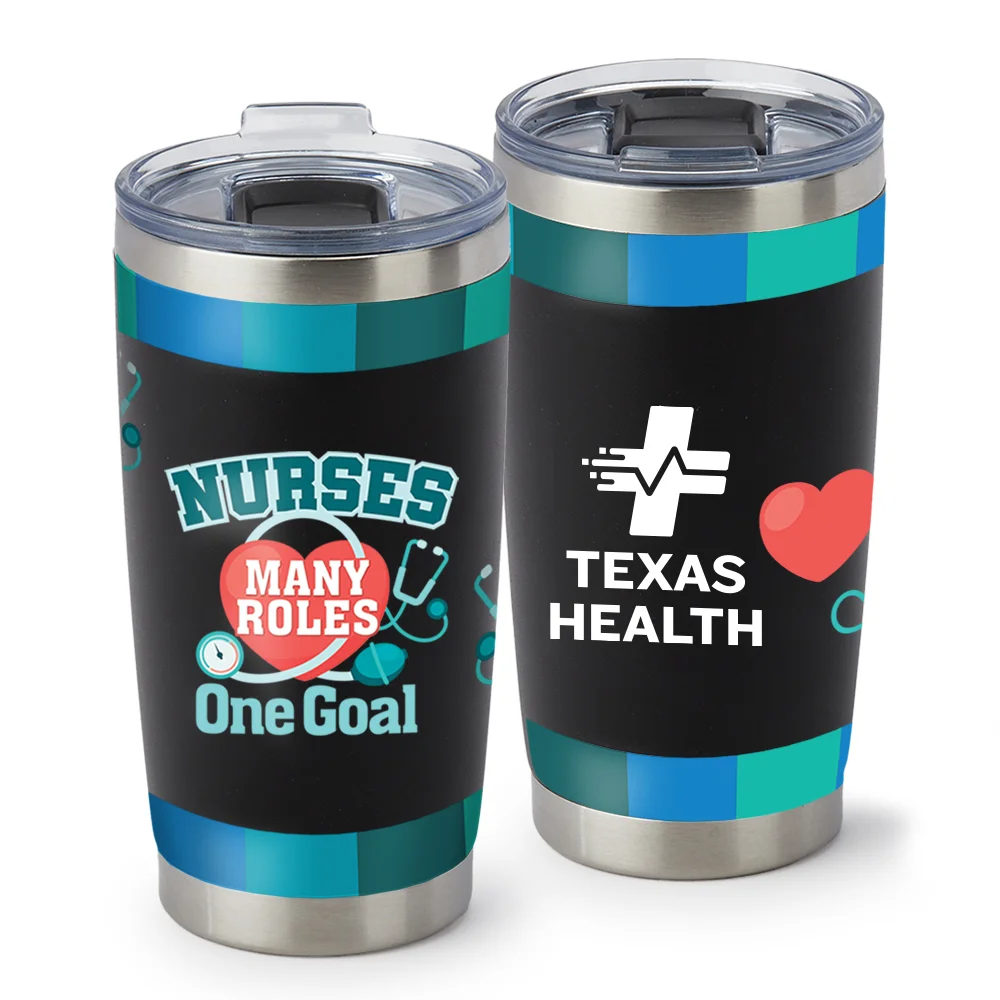 Nurses: Many Roles, One Goal Black Templock Stainless-Steel Vacuum-Insulated Tumbler 20 oz. - Personalization Available