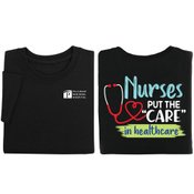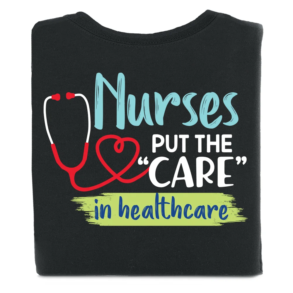 Nurses Put the "Care" in Healthcare Unisex Two-Sided Short-Sleeved T-Shirt - Silkscreened Personalization Available