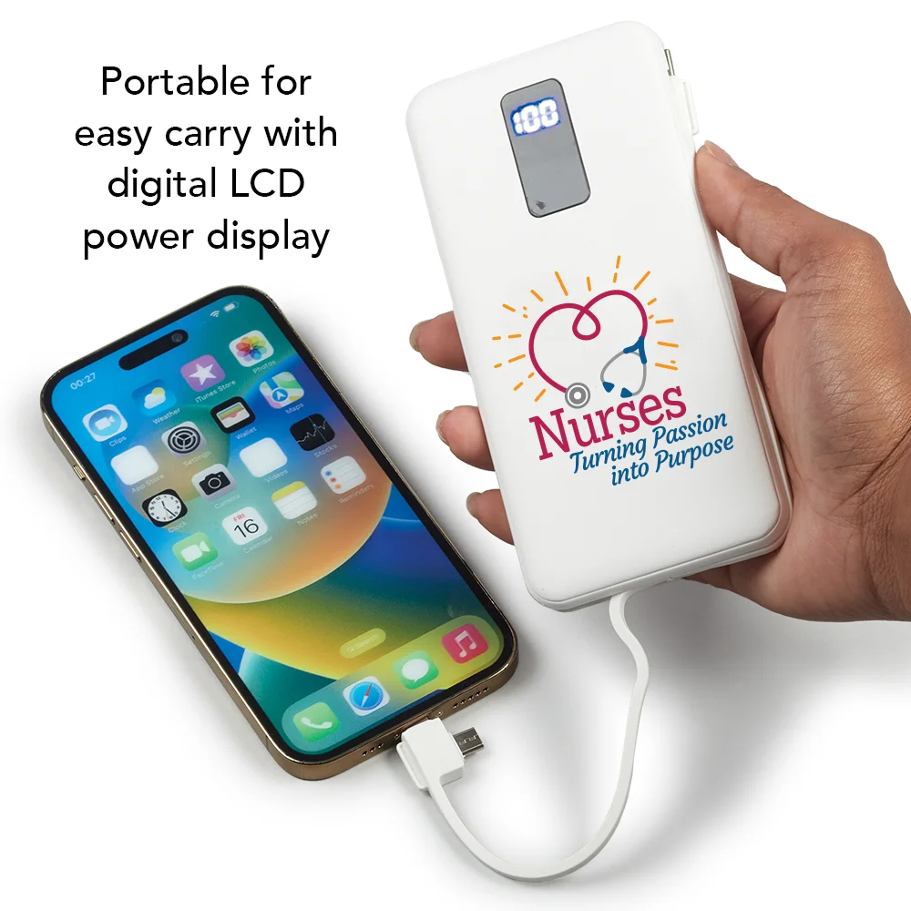 Nurses: Turning Passion Into Purpose Supercharge 10,000-mAh 3-in-1 Fast-Charging Power Bank With Built-In Charging Cables