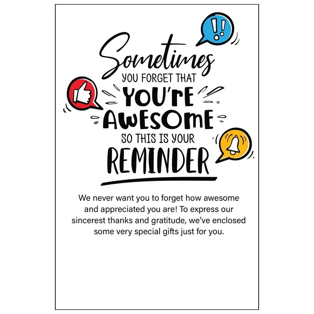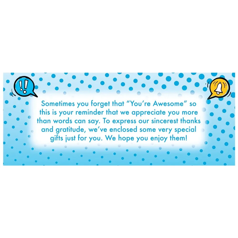 Personalized Appreciation Card:We never want you to forget how awesome and appreciated you are! To express our sincerest thanks and gratitude, we've enclosed some very special gifts just for you.