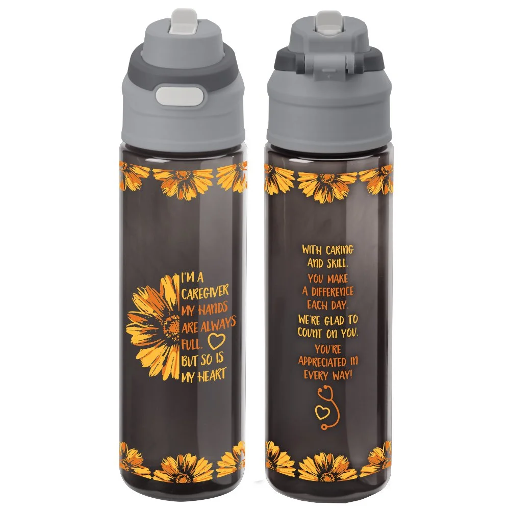 3-piece gift set includes: Tritan™ Dual-Sip Water Bottle 28 oz. With Carry Handle, "Toe"-tally Awesome Ankle Socks, Mini Pocket Journal With Mini Metal Stylus Pen - plus a free Appreciation Card