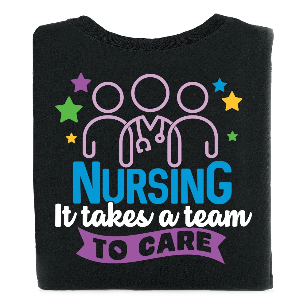 Nursing: It Takes a Team to Care Unisex 2-Sided Short-Sleeved T-Shirt - Silkscreened Personalization Available