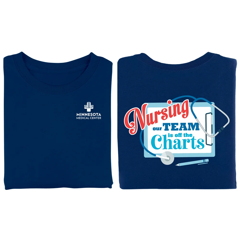 Top Nurse: Going Above & Beyond in Healthcare Unisex 2-Sided Short-Sleeved T-Shirt - Silkscreened Personalization Available