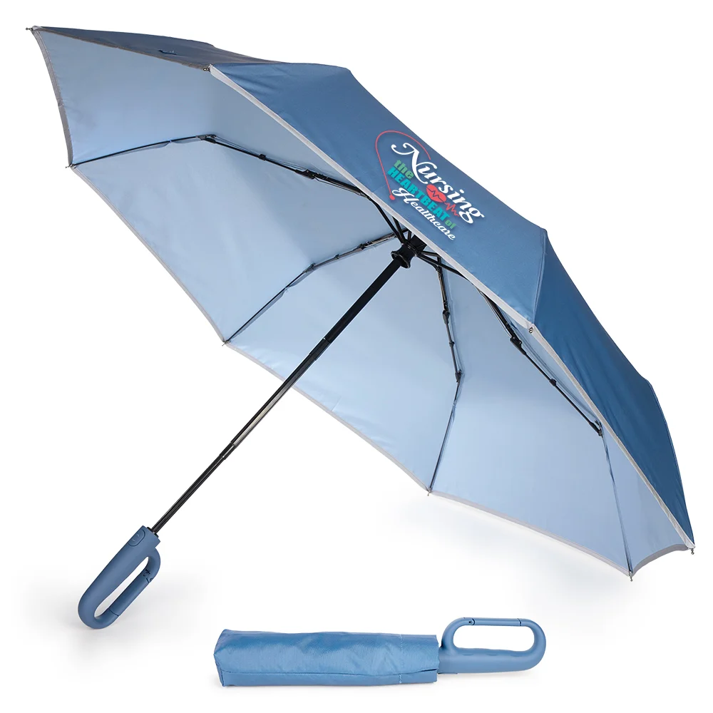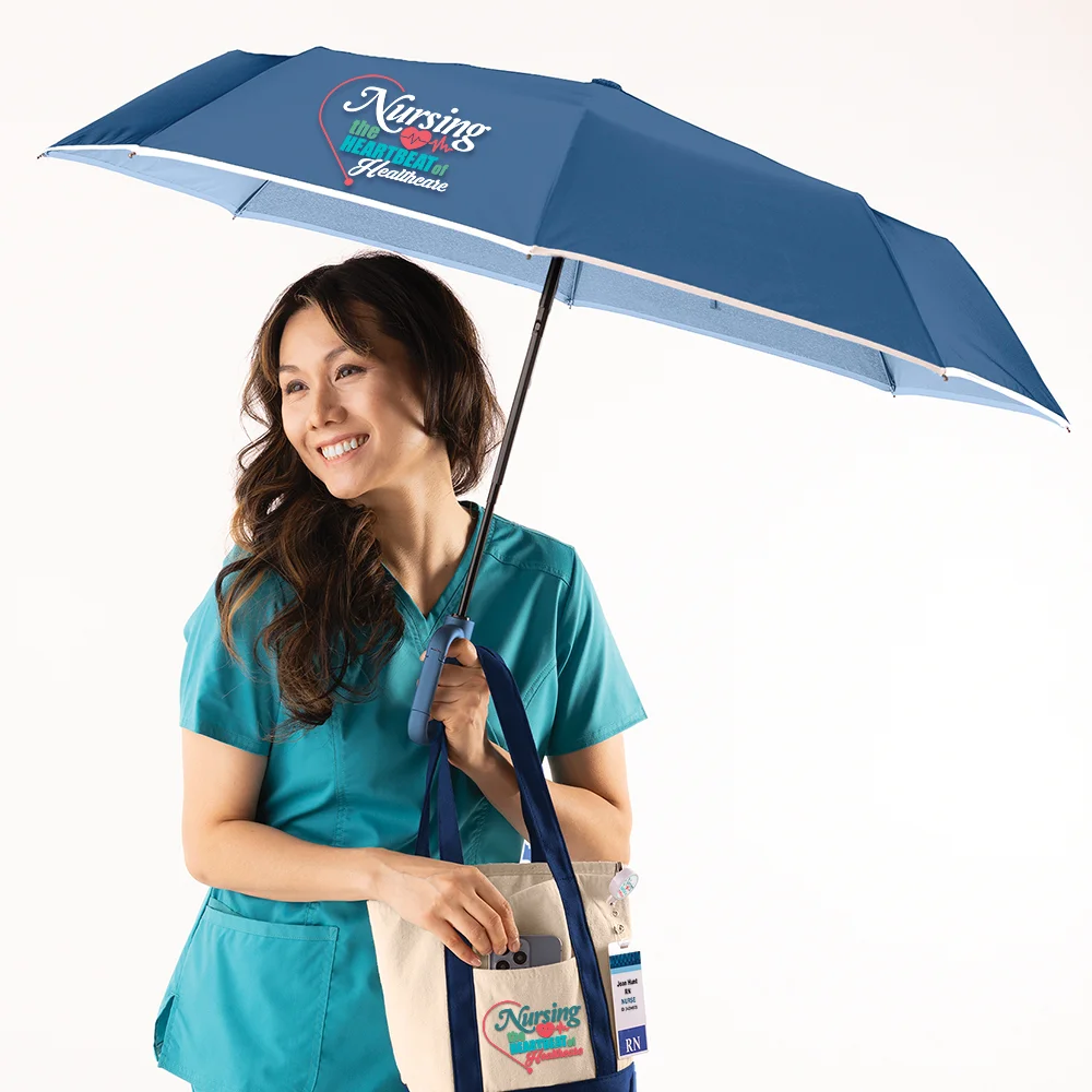 Nursing: The Heartbeat of Healthcare 46" rPET/UV Auto Open & Close Umbrella With Reflective Trim & Carabiner Handle