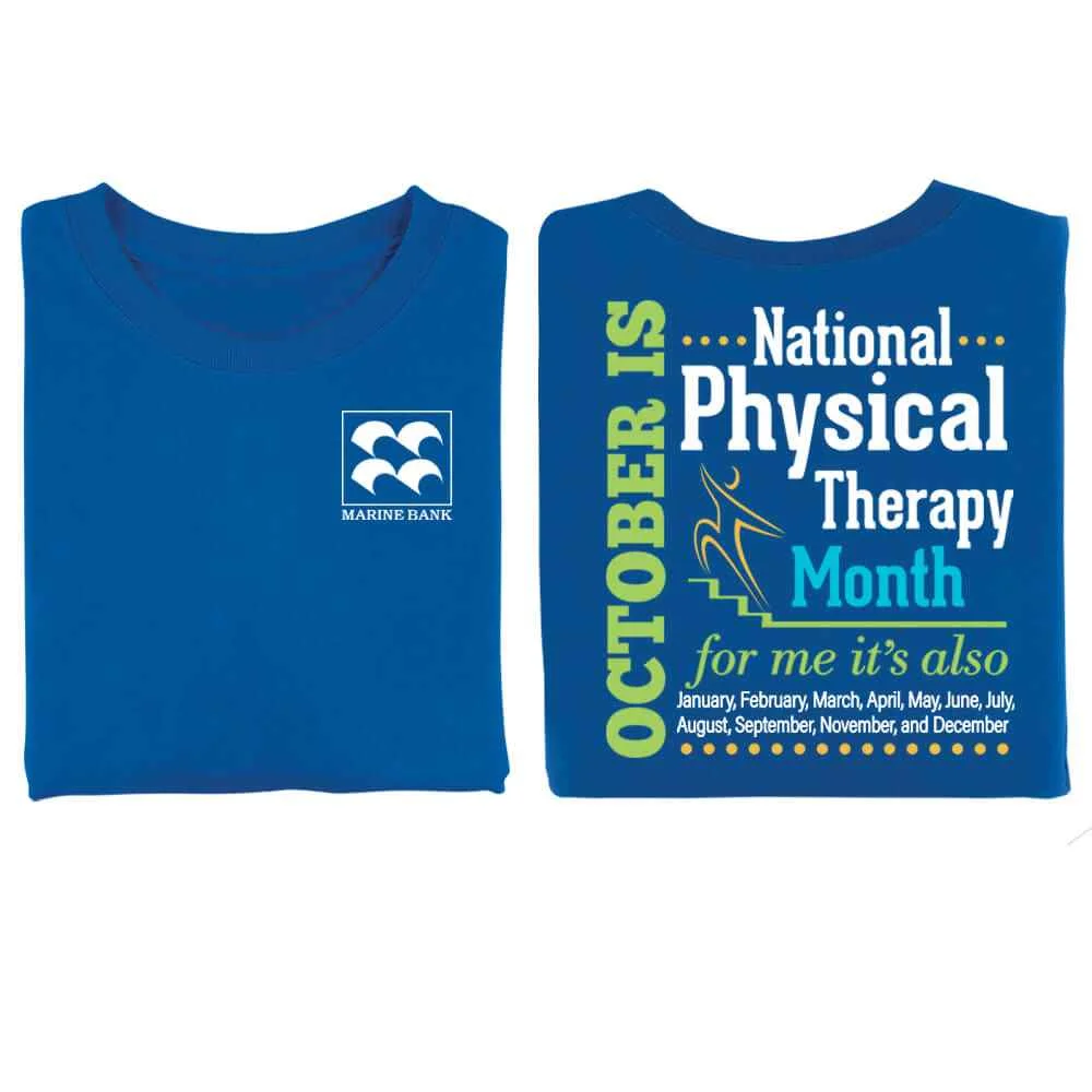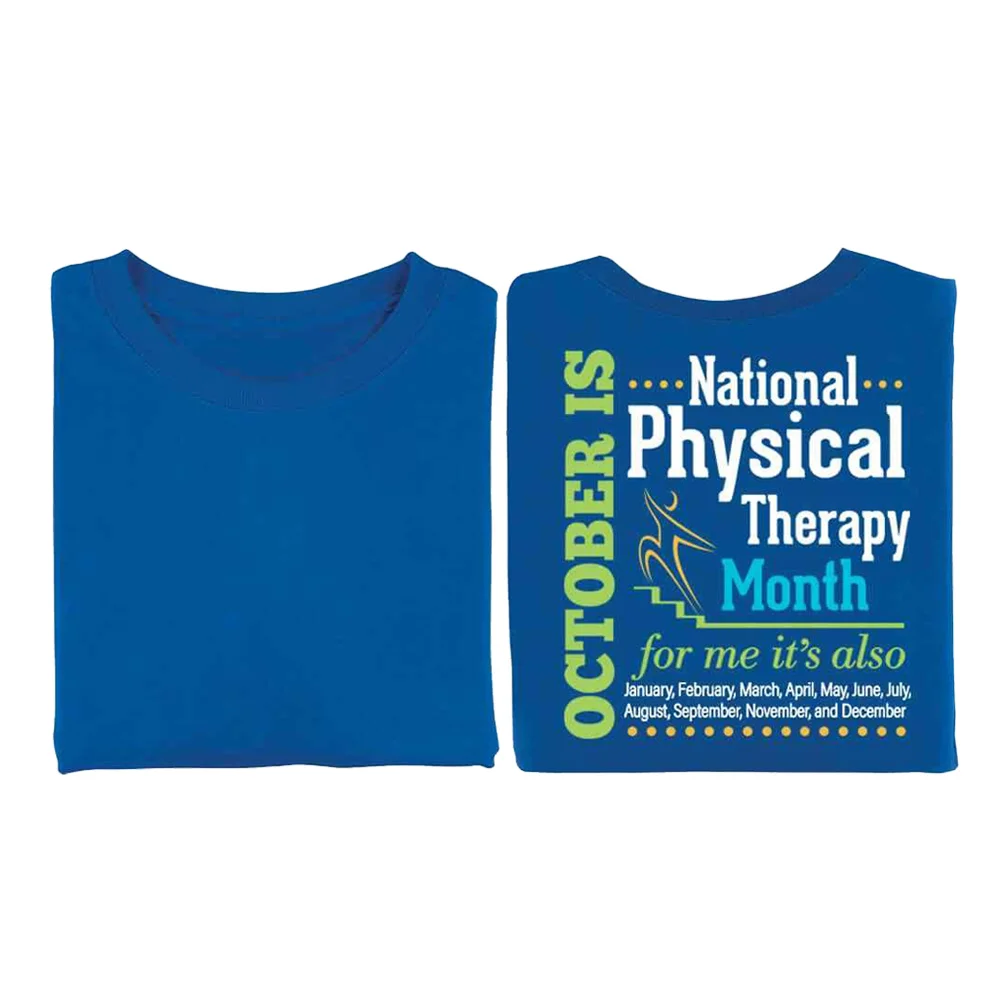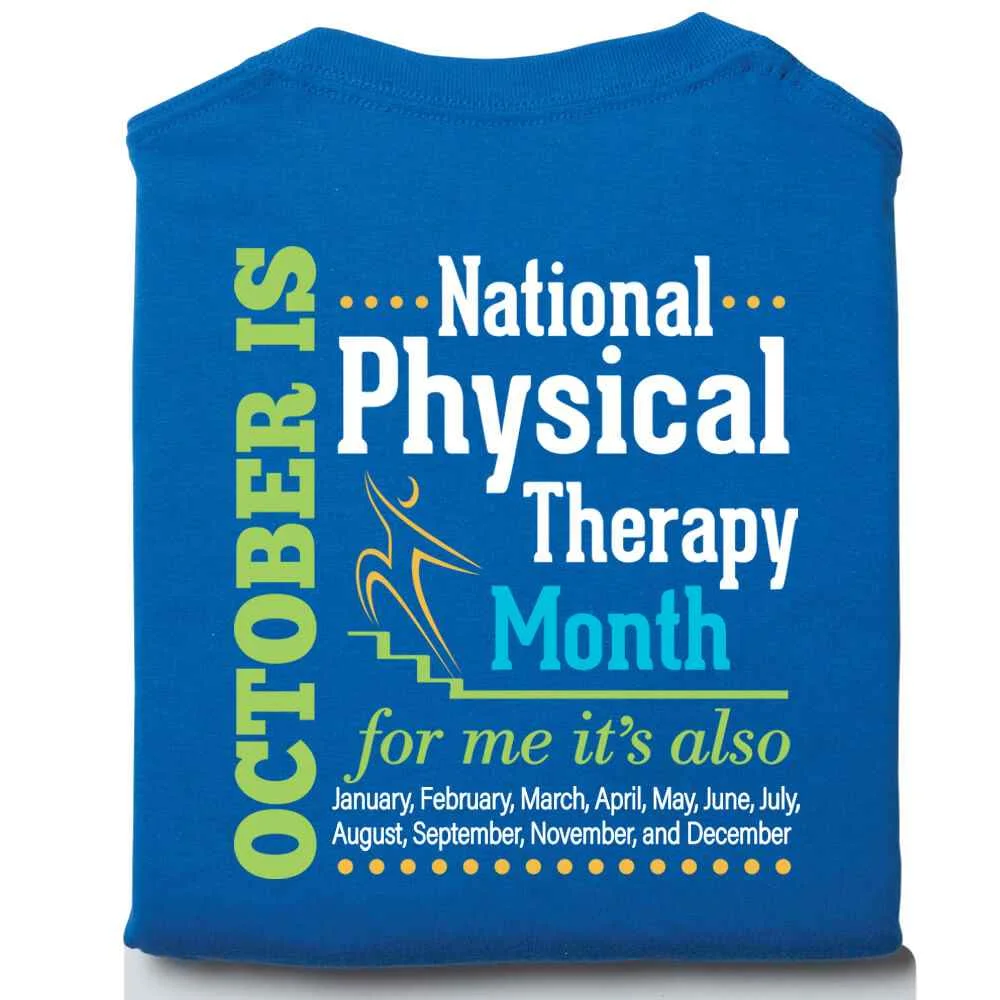 Features our exclusive design on back recognizing Physical Therapy is all year long and your screenprinted personalization on the front upper left chest