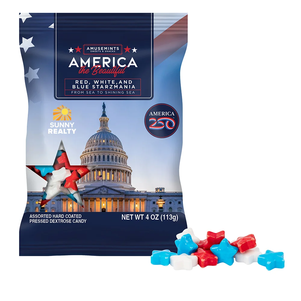 Bag includes 4 oz. of red, white, and blue Starzmania dextrose candy
