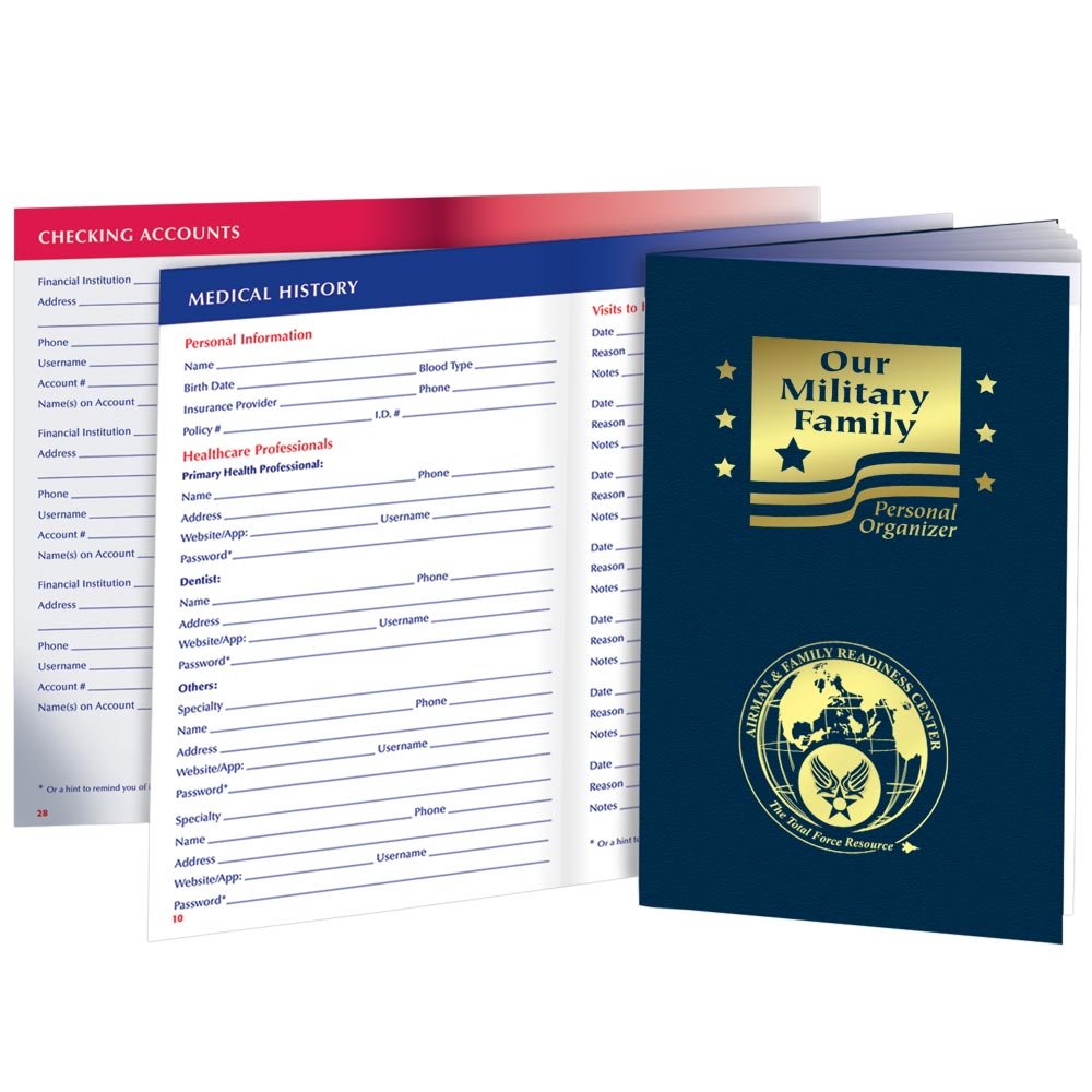 64-page Organizer helps military families keep all their vital information in one place, including military service, insurance, health, entitlement benefits, and much more
