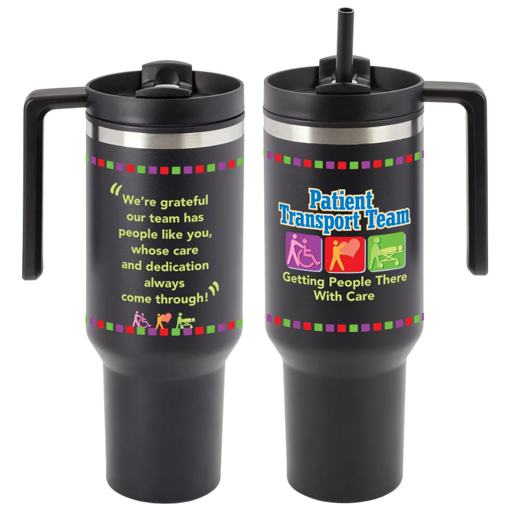 Patient Transport Team: Getting People There With Care Quencher Stainless-Steel/Plastic-Lined Tumbler 40 oz. With Handle
