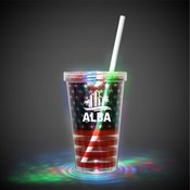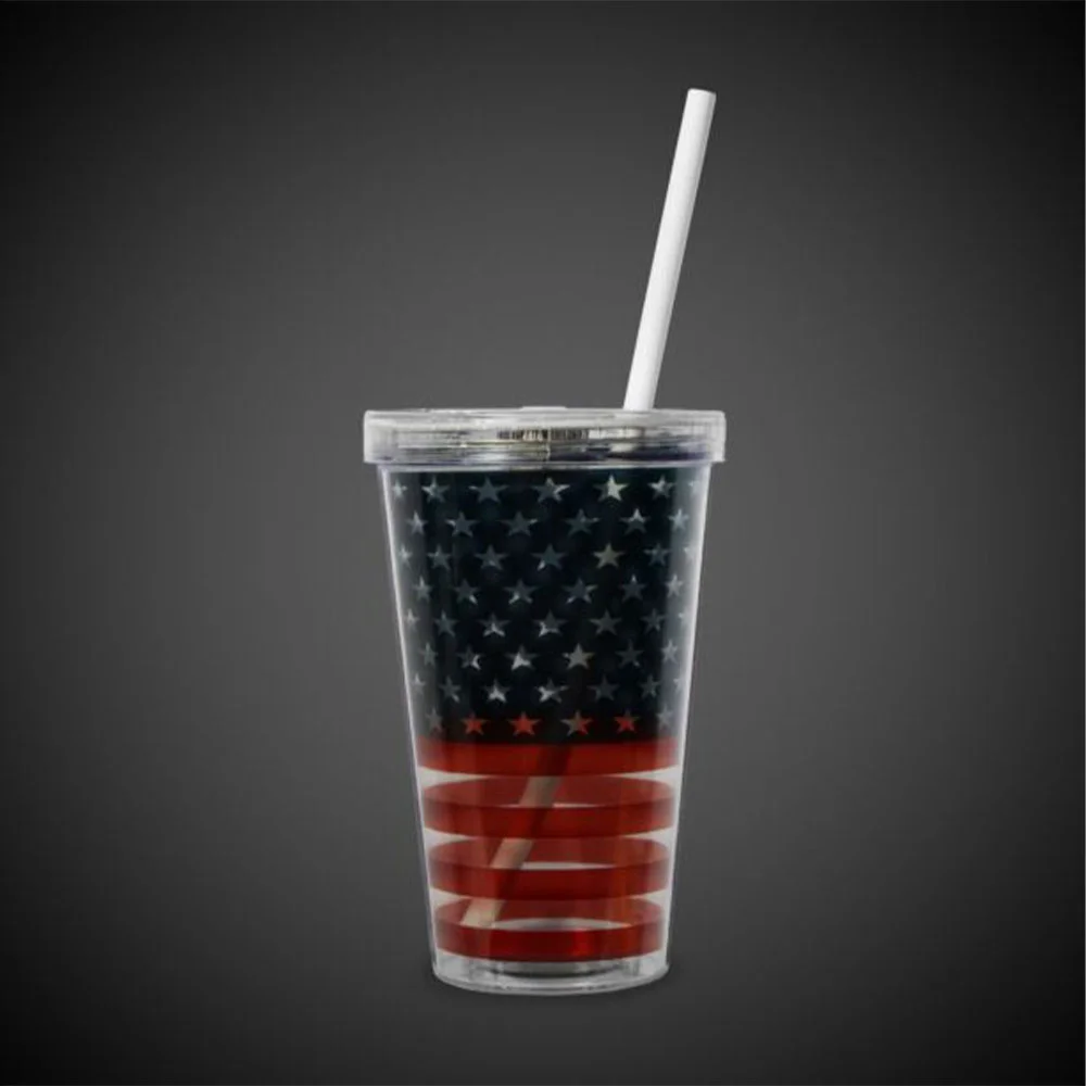 LED Patriotic Double-Wall 16 oz. Cup designed for durability and visual impact, this reusable cup features a double-wall construction that helps keep beverages cooler while securely housing bright, built-in LED lights for a bold red, white, and blue glow