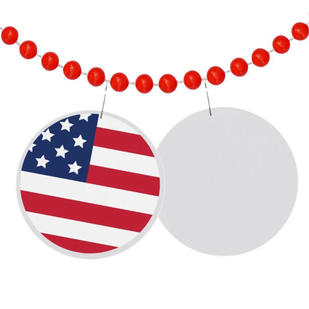 Our 2 1/2" plastic American Flag Medallion comes with an attached metal j-hook clip so you can clip them to your choice of colorful beads to create the perfect Patriotic Necklace